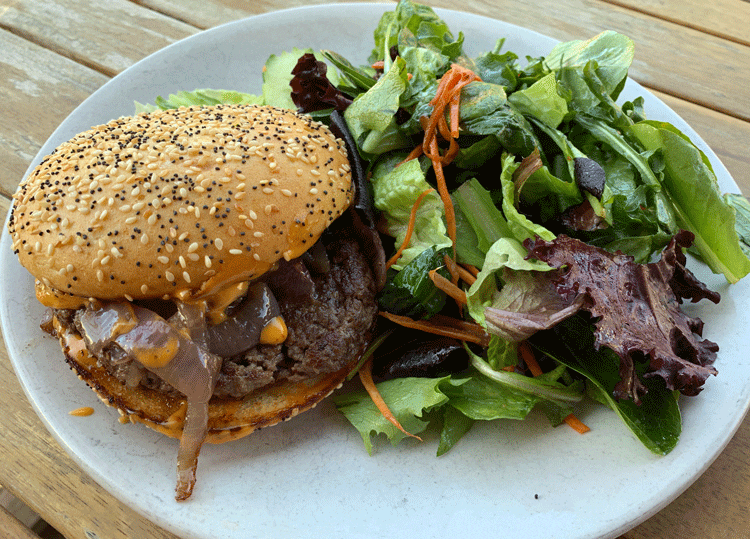 “Sambal? Why would someone with less rhythm than any white man who ever lived order a Sambal Burger?” No, Sky, sambal is a sauce made of chiles and used in several Asian cuisines. You’re thinking about samba, the Brazilian dance. More than any item on the brunch menu, Sweetwater’s Sambal Burger (organic grasped beef with sambal aioli, caramelized onion and cucumbers served on a gluten free bun with spring mixed greens) called to me, the promise of a burger with real kick. “You mean like you’d get from a green chile cheeseburger.” Not quite. Sambal is not only made with great Indonesian chiles with a jalapeno-like potency, but with just a bit of vinegar for a flavor burst green chile doesn’t have. Sweetwater’s burger, while quite good and obviously made with high-quality beef, just didn’t have enough sambal for me, but then pain is a flavor for me.
