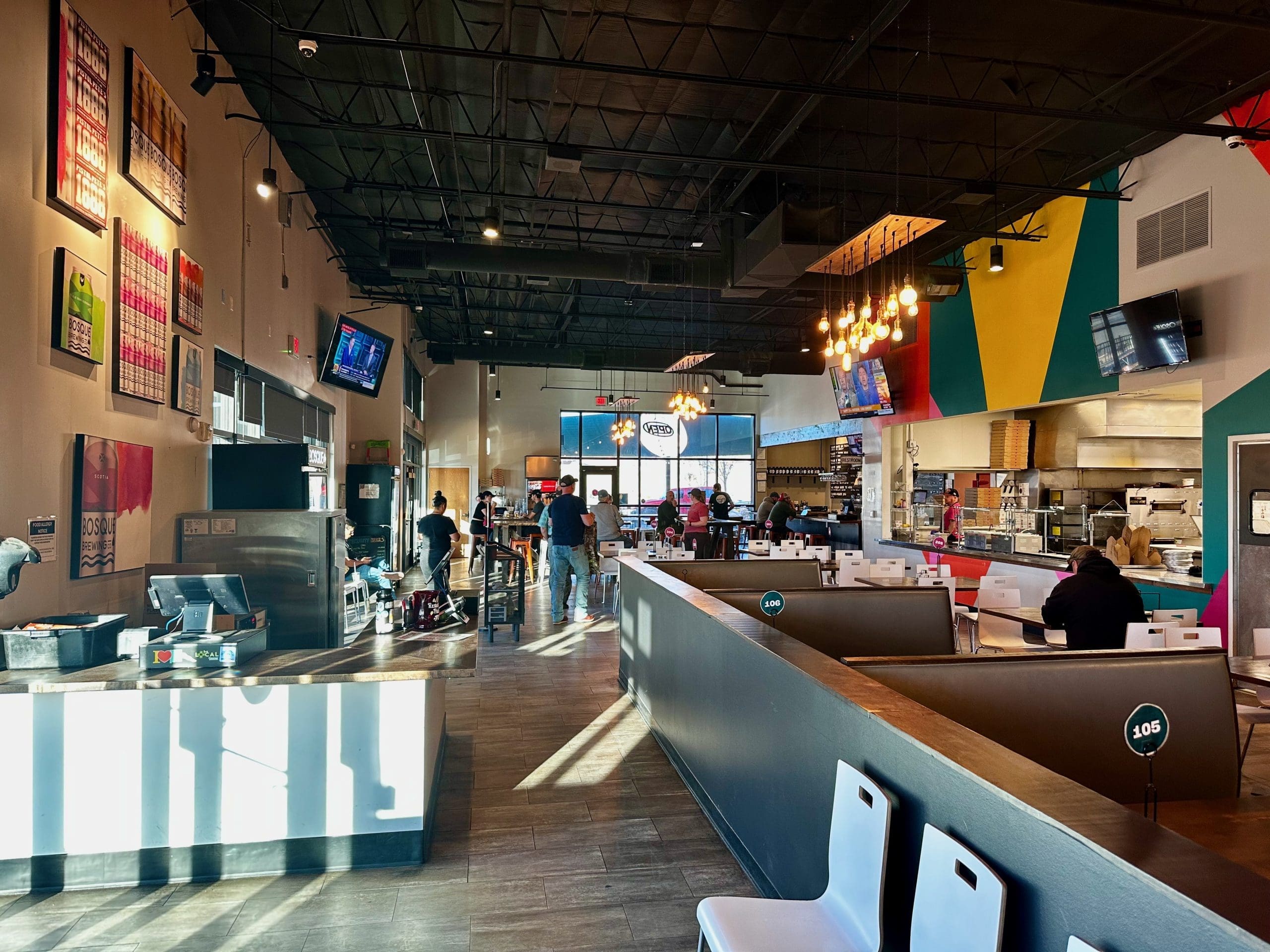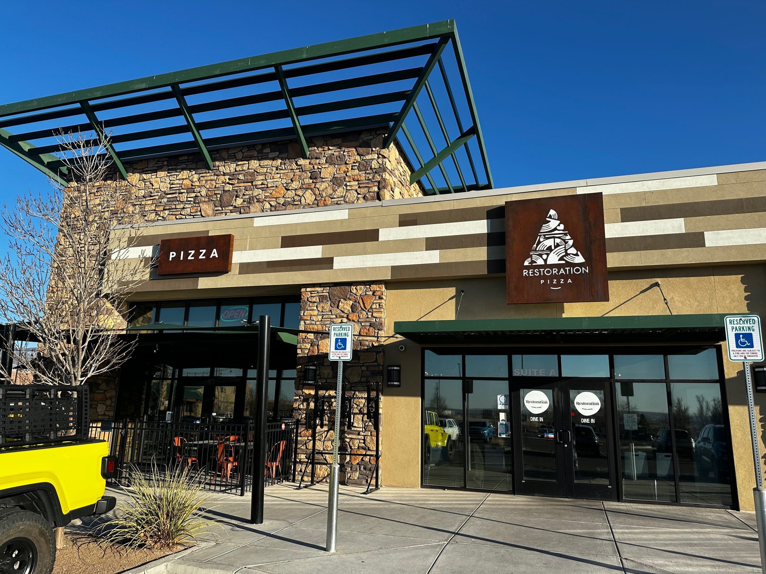 If, like me, you believe pizza also has restorative powers, especially after a rough day, Restoration Pizza is the type of place you might want to call your own. Its mission statement is “to give back to the community, by creating a place and space in which people can gather to eat, drink, laugh and be comfortable.” Restoration Pizza is situated in a 3,400 square-foot property within the cozy confines of the Legacy at Journal Center, a development which also houses Cabela’s. The interior is somewhere between industrial chic and rustic casual. An open kitchen provides an excellent vantage point of pizza being made from scratch. A capacious east-facing dog-friendly patio with spectacular views of the Sandias is best experienced in the late afternoon and evening after the sun has made its rotation past six o’clock in the sky.