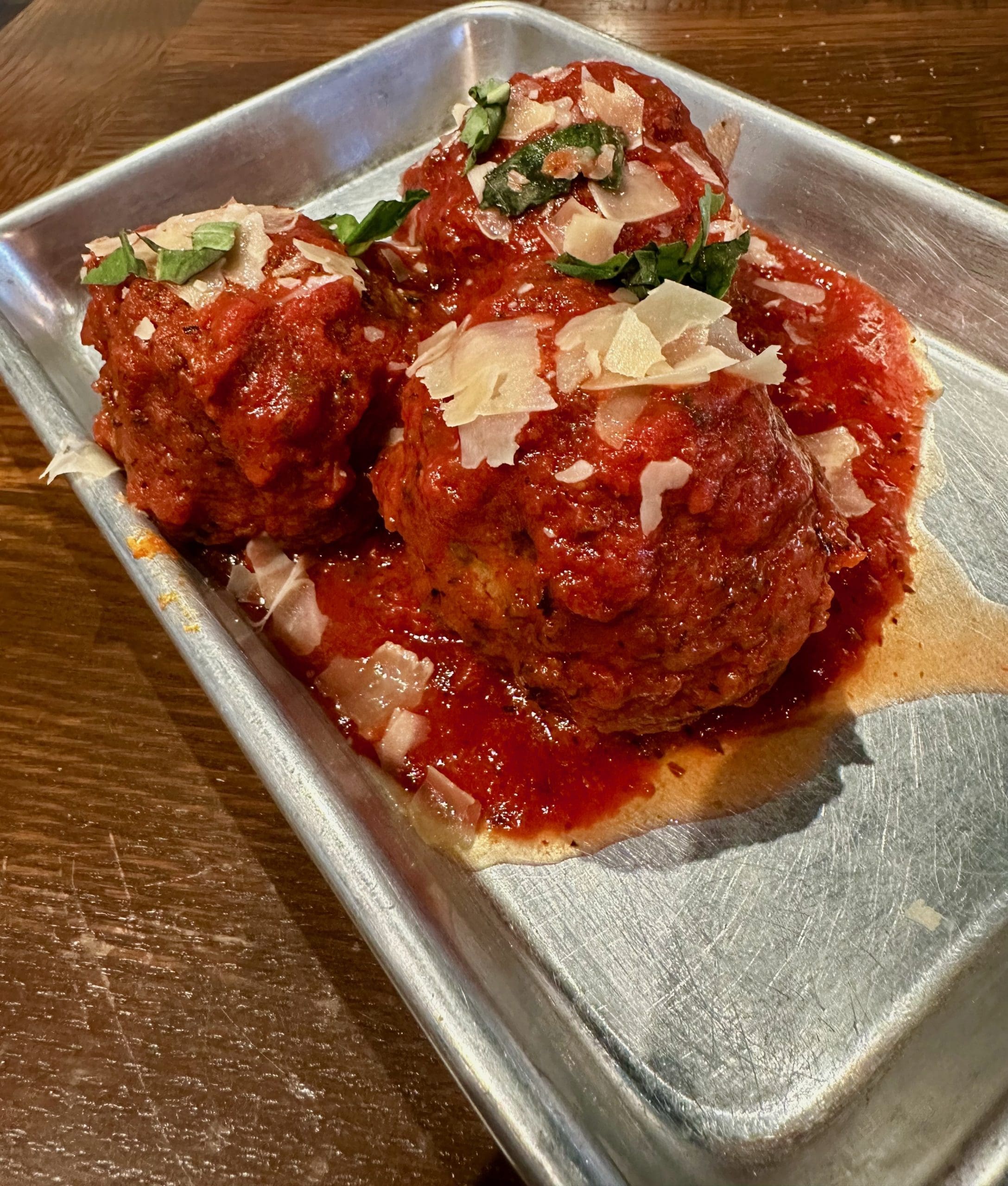 20 April 2019: Writer Daniel Handler likened meatballs to miracles “because nobody can exactly agree on what they are made of, where they come from, or how often they should appear. One bite of Restoration Pizza’s savory meatballs (with red sauce, shredded Parmesan and basil) was all it took to convince us all meatballs should be made like these. Picture three per order meatballs, each roughly the size of a baseball, on your plate and it might inspire debates as to how (or whether) to share the third. These are seriously great melt-in-your-mouth meatballs, both hefty and light and tender enough you could cut them with a spoon. They practically weep juices when you bite into them. The red sauce has a nice combination of sweet and savory notes. NOTE: The deliciousness of the savory meatballs wasn’t replicated during our second visit. The culprit (as is too often the case) is salt. The meatballs were in dire need of desalinization.