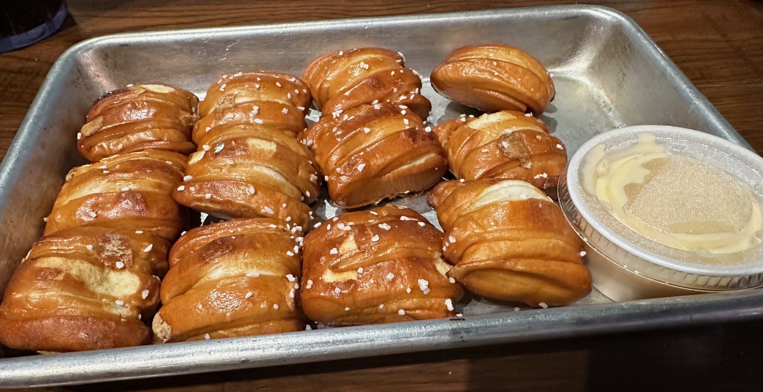 28 February 2024: Surprisingly less salty than the savory meatballs are Restoration Pizza’s pretzel bites served with house-made beer queso. We all know a pretzel is a handheld yeast bread that’s usually shaped into a twisted knot. The operative word there is “usually.” More often than not, pretzels are fashioned into shapes other than the familiar twisted knot. Perhaps, as my Kim surmised, alternative shapes are used to make you think the pretzels are less salty. At Restoration Pizza, the pretzels are shaped into a puffy bread roll shape with large granules of sea salt generously spread atop. They’re doughy and fluffy with the requisite pretzel flavor we all love.