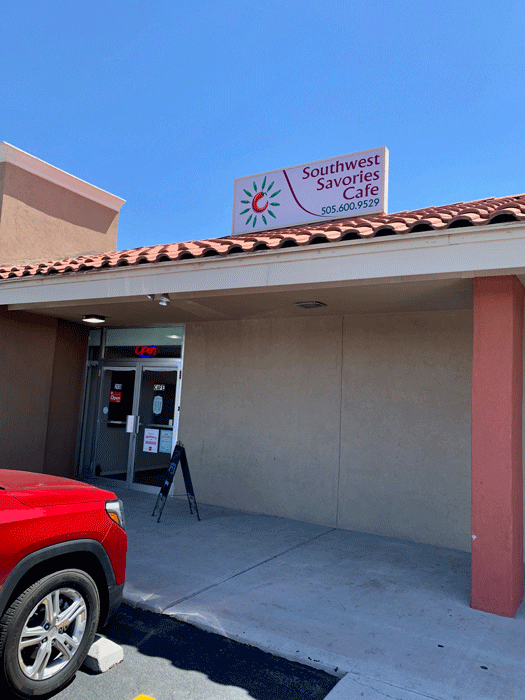 Credit most of that to the bane of many a restaurant that could have been great if only it had been discovered: location, location location. Southwest Savories is ensconced in a veritable ghost town of a strip mall time and people seem to have forgotten. Though it’s recessed by only one block from the heavily trafficked San Mateo Blvd. about half a mile north of its interchange with I-40, you’d think it was on the West Mesa desert somewhere. Mario and I quickly concluded that Southwest Savories is much too good to remain a hidden secret. This is one cafe which should have diners lined up to get a seat!