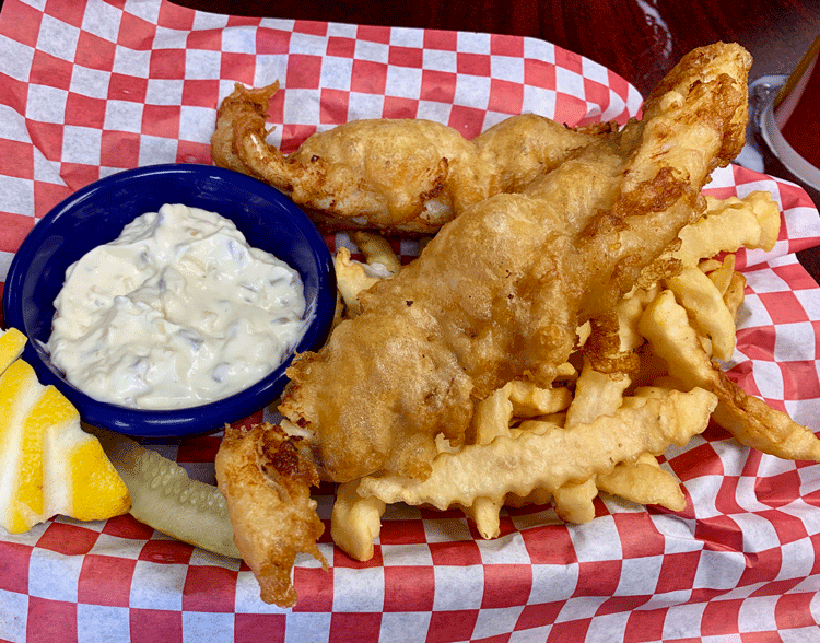 Whether you’re a bit under-the-weather or feeling chipper (get it), another great choice is the fish and chips (two Alaskan amber beer-battered had dock fillets with a choice of fries or chips). Haddock is a great option when preparing fish and chips. It’s a lean, firm, white-fleshed, cold water fish with a delicate, never “fishy” flavor. Two golden-hued planks each the size of a small puppy are served atop a small mound of crinkly French fries and a ramekin of tartar sauce (or you can request malt vinegar if you prefer). These is a top-tier fish and chips plate.