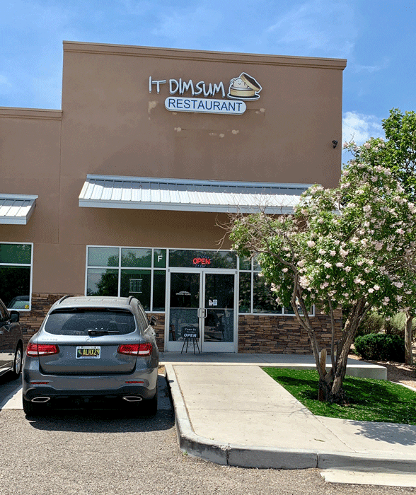 In the spring of 2019, Albuquerque saw the launch of a third restaurant devoted (almost) exclusively to dim sum. Fittingly its appellation is It Dim Sum which leaves no doubt as to its raison d’être. It Dim Sum is ensconced in the space which once served as home to Best Lee’s, a traditional American-Chinese restaurant. That space is pristine and attractive in a contemporary industrial style with plenty of multi-hued wood accents and metallic seating which is more utilitarian than it is comfortable. Exterior signage leans toward cutesy with a depiction of an anime person peeking out from inside a steamer basket.