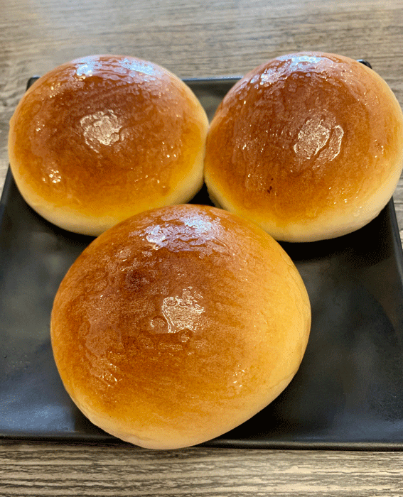 First in our cavalcade of small plates was barbecue pork bun (char siu bao), three baked golden brown rolls glazed with a sweet, sticky honey syrup and stuffed with roasted Chinese barbecue pork (with discernible five-spice powder, soy sauce and honey). More often than not, we’ve found the barbecue to be as sweet or sweeter than the roll, but that wasn’t the case at It Dim Sum. That made for a delightful contrast of sweet and savory tastes that go so well together. Much as we’ve always enjoyed barbecue pork bun, we’ve sometimes wondered how the roll would taste with a salty French butter in lieu of the barbecue pork.