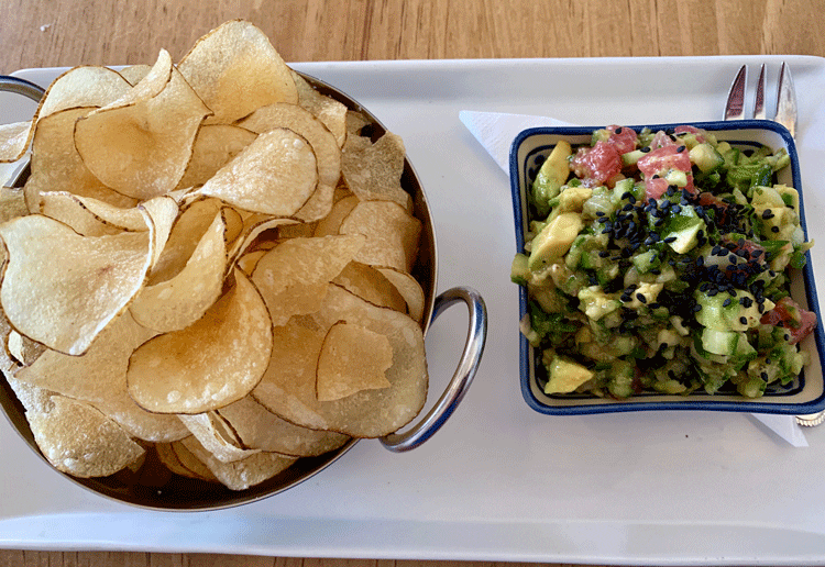 These chips are even better with a side of tuna-avocado poke (check out the close-up in the June edition of Red or Green). The chips are formidable enough to scoop up the poke (small chunks of fresh, pinkish tuna; creamy avocado, tomatoes and green peppers studded with black sesame seeds ). It’s a combination as good as any chips-dip pairing you can name. While The Feel Good may take pride in being “tradition-driven, not chef-driven,” this tuna-avocado poke has chef written all over it. If you didn’t know better, you might suspect it’s ferried over from one of Albuquerque’s poke restaurants though this one isn’t overly sauced as some tend to be.