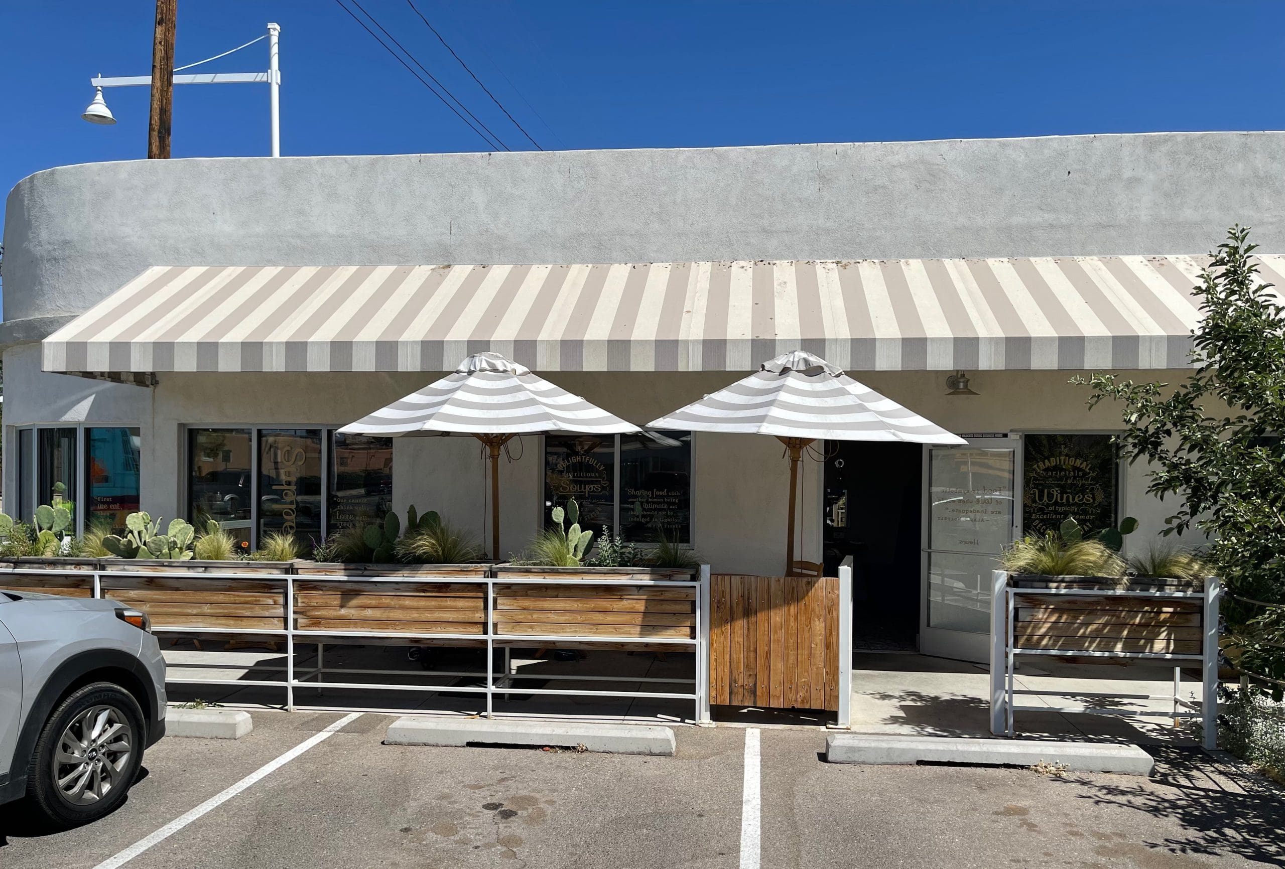 Ironically The Feel Good occupies the Lilliputian space that until 2009 housed the Route 66 Malt Shop where conservative ideology was unabashedly on display on the counter as you walked in. It made for interesting banter between the owner and patrons who weren’t like-minded. Several other tenants have occupied the space since 2009, but none have provided such a dramatic departure from the Malt Shop’s Route 66 nostalgia theme as has The Feel Good. The 900-square-foot space is bright and airy with a sophisticated and intimate feel. In some ways, it’s both a continuation and a departure from Modern General, its sister next door and even moreso from Vinaigrette, Erin’s inaugural Duke City venture.