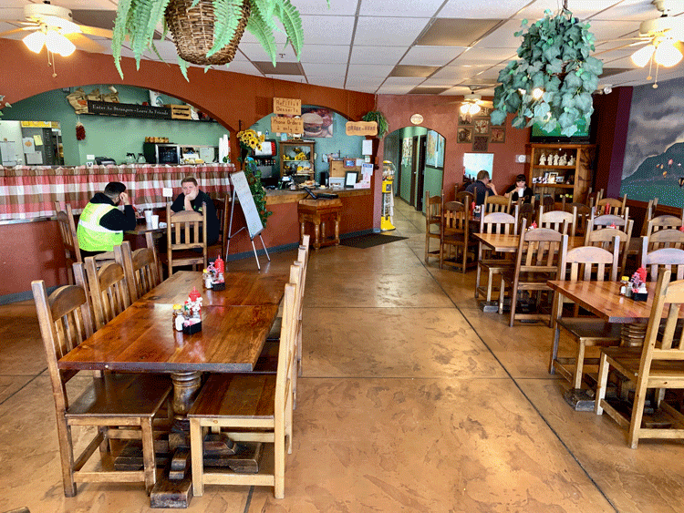 That menu is replete with New Mexico comfort food–including red or green enchiladas, carne adovada, tacos and tostadas as well as chicken fried steak and meatloaf–served in generous portions. At half-a-pound each, burgers are twice the size of the Quarter Pounder and they’re served with your choice of steak house fries, a side salad or housemade potato salad. You can also have your burger on a tortilla or sopaipilla. Chicken sandwiches, deli sandwiches and burritos round out a bounty as alluring as the seven cities of gold were to Francisco Vázquez de Coronado.