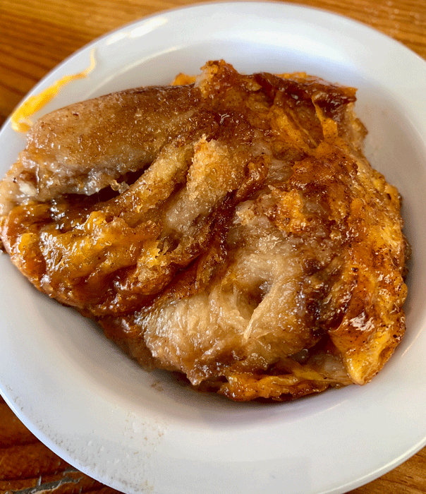 28 February 2020: Ella Fitzgerald and Louie Armstrong lamented “You like potato and I like potahto. You like tomato and I like tomahto.” Northern New Mexicans tell our less cultured Southern brethren “You say sopa. I say capirotada.” By any name (City Limits calls it “sopa“), this unique bread pudding is one of my very favorite desserts during, before and after Lent. One of the things that makes sopa unique is the use of aged or savory cheese. It’s a nice counterbalance to the sweet syrup in which the bread is soaked. City Limits uses feathered cheddar which is shredded, but not to a fine degree. It’s a great melting cheese which helps make sopa an outstanding bread pudding. My friend Larry McGoldrick, the professor with the perspicacious palate and an expert on bread pudding, would love it.