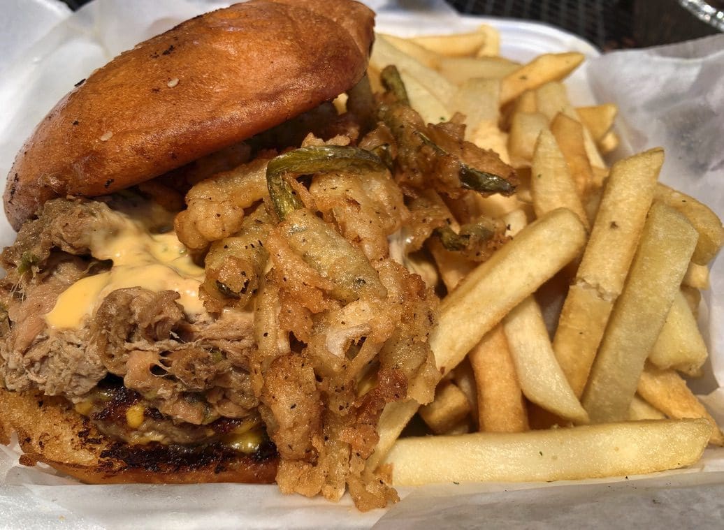 13 January 2022: One of my cardinal dining rules involves not having two-of-a-kind meals. We don’t, for example, order an appetizer of breadsticks when we’re having pizza or meatballs when we’re having steak. That rule doesn’t necessarily apply for entrees. When we find a great mixed grill or mixed parillada, we tend to order it. Don Choche doesn’t so much mix meats as much as incorporate them. One such example is the brisket burger, a pile of green chile brisket atop a thick burger patty. There’s nothing else on this burger. No mustard, ketchup, mayo, onions, lettuce, tomato, etc. It’s meat on meat and it’s a carnivore’s dream.