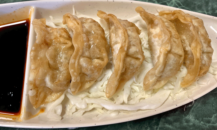 Having enjoyed our “entertainment,” we then focused on the business at hand–perusing a diverse and interesting menu replete with potentially delicious options. It’s a menu offering not only Japanese comfort food favorites, but foods from other Asian nations. To point out what the menu offers solely by listing its categories would be selling the menu short: appetizers, fried rice, stir-fry noodles, bento boxes, noodle bowls, rice bowls and dessert. Within each of those broad categories are a number of tempting teases sure to please discerning diners. Each of us decided to order different entrees and split appetizers.