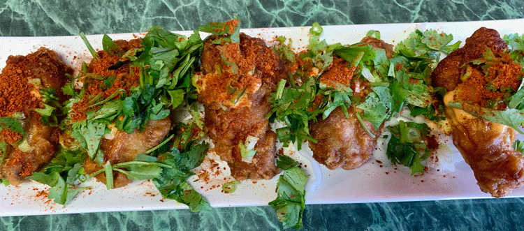 By universal acclimation, our favorite among the four appetizers we shared were the Iron-style chicken wings, a mix of drumettes (shaped like the much larger chicken drumstick) and wingettes or flats (the two thin bones that run parallel to each other down the length of the flat). Unlike so many chicken wings which feature a lacquered-on sauce, Iron Cafe’s wings are dusted in a pleasantly piquant rub from which we could discern paprika and red chile. These wings are meaty and delicious. So were the tempura shrimp and vegetables which weren’t photographed, so eager were we to dig into them. By the way, the appetizers are a bit of a throwback in that you won’t need a bank loan to afford them.