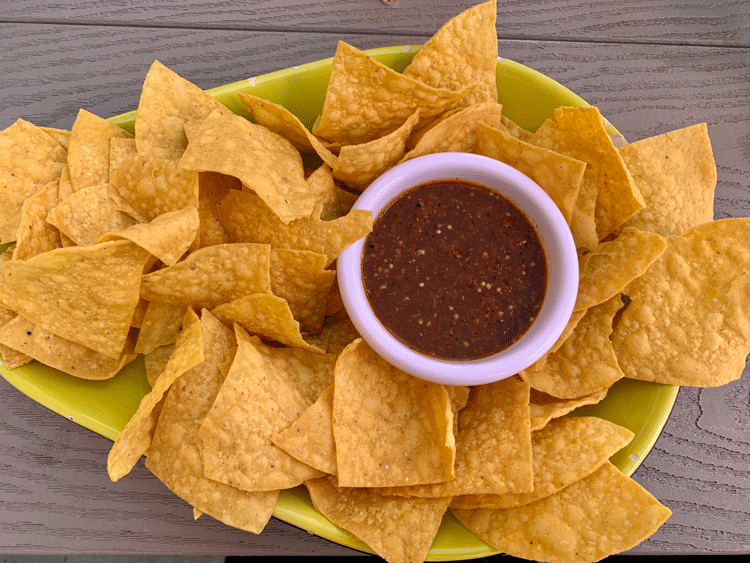 That’s three salsas (if you count pico de gallo) to go with four types of guacamole, truly a feast fit for Montezuma. Surprisingly the most piquant of the three salsas is the tomatillo salsa. What’s more surprising is that tomatillos really have no “chile heat” and aren’t even measured on the Scoville heat index. They’re tart, fruity and herbaceous, but not piquant. Our server couldn’t tell me what heat additive was used with the tomatillos, but whatever it was had a real bite. Our favorite was the tatemada salsa (and not just because I learned a new word) whose pronounced charred flavor and pleasant piquancy married well with the chips.