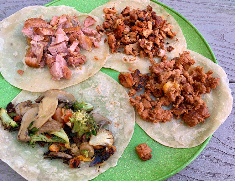 19 October 2019: Traditional street tacos are served with your favorite meat: carne adovada, al pastor, carnitas, shrimp, chicken and shrimp. There’s also a vegetarian option. Carnivorous with more healthy inclinations can also opt for their meat-filled tacos to be wrapped in lettuce. We were happy with all four tacos we ordered, but happiest with the vegetarian taco (grilled mushrooms, carrots, broccoli and other grilled vegetables). These are “super-sized” tacos Gustavo Arellano, nationally syndicated author of Ask A Mexican, decries as inauthentic. Tacos, he explains, are “meant to be a snack, a bit, not a full meal.” To each his or her own. We appreciated the full-sized tacos constructed on one corn tortilla per taco, not two.