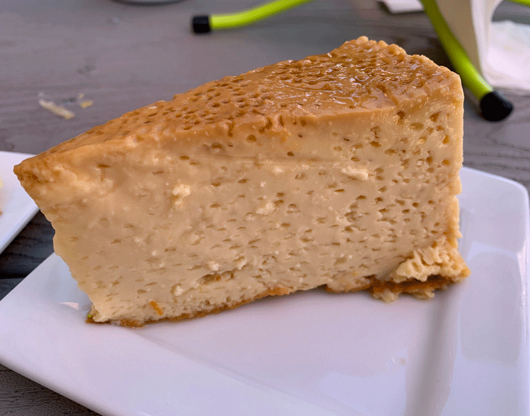 19 October 2019: Neither my Kim nor I are quite as fond of flan as we are of pastel tres leches. That doesn’t mean we don’t like it, but that given our druthers, we’d rather have pastel tres leches any time. Guaca Guaca’s flan is smooth and jiggly with a lightly caramelized topping. It’s also not overly sweet. We were hoping it would be topped with a creamy caramel sauce so we could say we had caramelo two ways–as a dessert and as a savory entree.