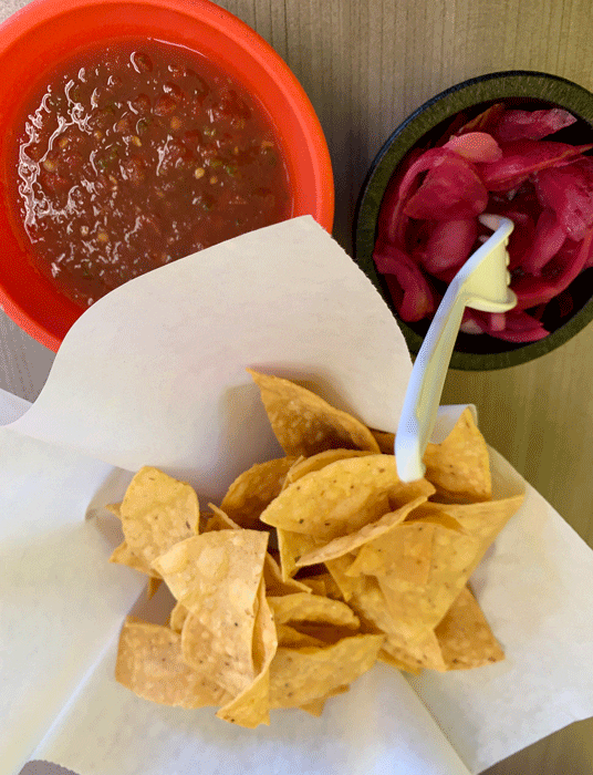 30 October 2019: During our inaugural visit on a frigolorific November day, we had the place to ourselves, giving me the opportunity to practice my Spanish with a very amicable server. Both Sr. Plata and I ordered the medio pollo asado, half a grilled chicken cooked over charcoal coals. For just a little more than a sawbuck, we enjoyed a virtual feast. First to our table were the chips and salsa with the pickled red onions. Every meal should start this way. Pickled red onions were new to Sr. Plata who enjoyed them on top of the chips as well as nestled in the warm corn tortillas. The salsa was pleasantly piquant with sweet notes punctuating the savory-acidic bowl while the chips were crisp vehicles for scooping up large amounts of salsa.