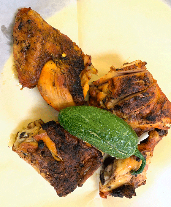 Most pollo al carbon is marinated in either an achiote or orange juice-based marinade. Done well (as opposed to well done), the pollo retains its moistness because it’s grilled slowly over low heat similar to barbecue. El Rey Del Pollo surprised us.