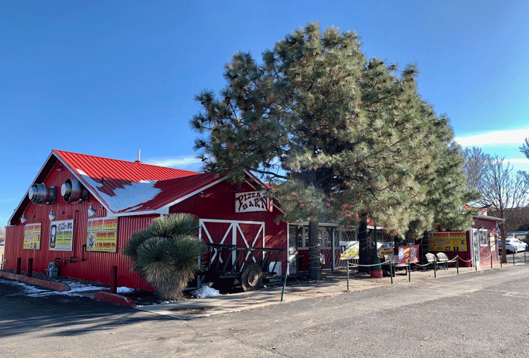 You don’t need the navigational skills of Starfleet’s most accomplished engineer Montgomery “Scotty” Scott to find Pizza Barn. All you’ve got to do is point your own shuttle craft east and get off on the Edgewood exit. You can’t miss the big red barn nestled under a canopy of pine trees. Sure, big red barns are much more common in Nebraska or Iowa, but they’re not necessarily out-of-place in New Mexico. At least not this one. Besides, it’s pretty charming. The interior is comfy and cozy with plenty of booth seating. There’s even dog-friendly outdoor seating though you probably don’t want to visit on a 43-degree day as we did.