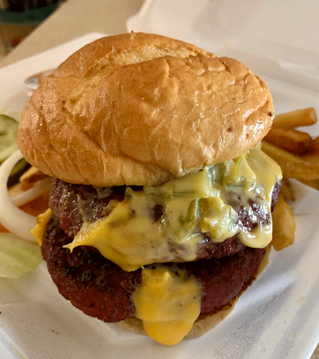 1 April 2020: Outstanding as Triple B’s burgers all may be, the smoke burger is a life-changer, one of the most unique and outstanding burgers in the Land of Enchantment. As with traditional barbecue, smoking burgers is a low-and-slow process (albeit not nearly as slow as smoking other cuts of meat). Because smoking triggers a chemical reaction within the meat that turns it slightly pink (similar in color to the smoke ring on other meats), the smoke burger has a reddish hue that should never be mistaken for undercooked. Smoke burgers are prepared at about a medium degree of doneness and are infused with a delightful hint of the woods on which they’re smoked. You’ll want to retain that aroma on your hands for at least a day. Better still, Triple B’s should distill it into aftershave form. It would be a huge hit with carnivorous males.