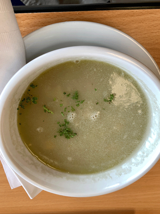 20 January 2020: Both Sr. Plata and I ordered from the Jerusalem’s Favorites section of the menu. Our entrees both included soup or salad. One of the two soup options (the other was lentil soup) is freeken not fricking) soup, a Palestinian chicken-based soup made with cracked wheat, onions, chunks of chicken breast in a homemade chicken broth, garnished with parsley and sumac. If chicken broth is a hot and comforting elixir to cure all ills and tame winter’s bite, this one is amped up courtesy of the sumac, one of my favorite spices.