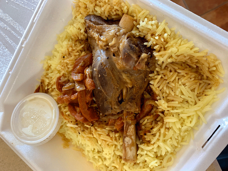 Americans who have a beef with lamb need only try lamb shank to learn that this is a cross-cultural meat with flavor. Because they come from the legs of a lamb, lamb shanks are understandably a very tough, muscular cut of meat. Then they’re covered by a thin layer of fat and connective tissue. When prepared well, lamb shanks have a strong, rich flavor. Proper preparation means cooking it slowly until the shank becomes tender and fully developed in flavor. That’s the way the lamb shank (tender lamb shank blended with our special spices served with rice and Arabic salad) is prepared and served at Jerusalem. Braised to a tender submission and seasoned with spices that highlight, but don’t mask the lamb’s native flavors, the lamb shank evokes a primitive ardor perhaps inherited from ancestors who ate a lot more meat. There’s just something very satisfying about gnawing at the bone to extricate morsels of unctuous lamb from the nooks and crannies of that bone. There’s something very satisfying about Jerusalem’s lamb shank.