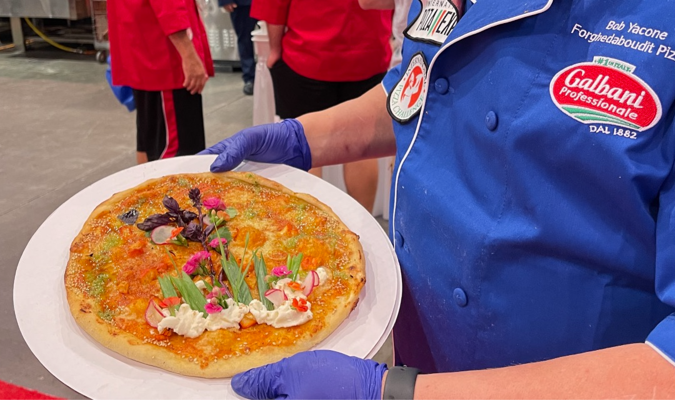 If Bob Yacone, chef and co-owner of Forghedaboudit Southwest Italian in Las Cruces, doesn’t present his bride Kim with a bouquet of flowers everyday, it’s because he doesn’t want to make the flowers envious of her beauty. A romantic at heart, Bob did bring flowers to the 36th Annual International Pizza Expo in Las Vegas, Nevada–not to celebrate Kim’s top ten finish in the traditional pizza category, but to incorporate flowers in the pizza he entered in the non-traditional pizza category. Bob’s entry was constructed with primrose pedals, scallions, beets, green basil, carnation pedals, ricotta cheese and sesame seeds all sauced with Bob’s patented Indian Tika Marsala sauce. This flowery-floury masterpiece finished in the top ten in the Southwest division (the largest and most competitive division) and 15th in the world. One of the judges bestowed a perfect rating of 30 to that ingenius pizza, one of only five perfect scores out of the 249 total scores in the non-traditional competition. This competition was so close that with one more point from just one judge Bob would have won the event. Congratulations Bob, Kim and the entire Forghedaboudit family.