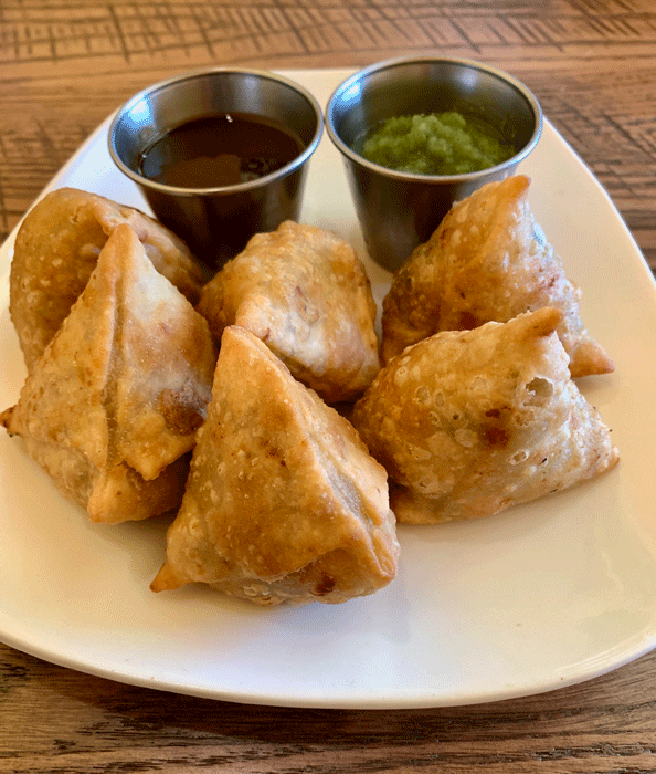 8 February 2020: The Marigold Cafe’s samosas are a unique India meets New Mexico treat stuffed with potato, green chile, and cheese. Offered a number of chutneys, we opted for the sweet, tangy tamarind and spicy mint-coriander chutney, dipping sauces with polar opposite flavors. The samosas are terrific with the green chile adding a unique twist, that of a lively punch. If you enjoy the piquancy of the green chile, the mint-coriander chutney amps it up even more. If you prefer a fruity contrast, you’ll enjoy the tamarind chutneys influence. Both are excellent.