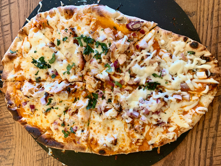 The menu delivers on the promise of fresh and exciting flavors with a line-up that includes Shareables/Starters, Soups & Salads, Burgers & Sandwiches, Favorites, Tacos with a Twist and Bowls. It would be easy to gravitate toward familiar New Mexican and American favorites, but what’s the fun in that? We purposely pursued Indian and Indian-inspired or Indian fusion items and there are plenty of them on the menu. During our inaugural visit, we enjoyed an Indian beverage (mango lassi), appetizer (samosas), entrees (tikka mac n’ cheese and tikka flatbread) with a terrific naan-based dessert to finish our meal.