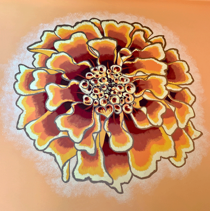 Architecturally the Marigold Cafe is an exemplar of modernity meets tradition. Anasazi style stonework and steel girders are a mirror opposite to Restoration Pizza’s storefront, its eastern bookend. The interior continues the theme with industrial style girders from which pendant lights are suspended. Ductwork hangs from the ceilings. A colorful mural on the restaurant’s eastern wall mirrors some of the spectacular sunsets which have spoiled Duke City residents. A capacious west-facing dog-friendly patio provides a panoramic view of those sunsets. Weather-permitting, it’s the best seat in the house. On the wall just above a cozy two-table cubby hole is another mural, this one depicting a marigold in bloom. Look closely enough just above the bottom petals and you’ll espy a heart sporting the initials (V and J) of the Cafe’s owners.