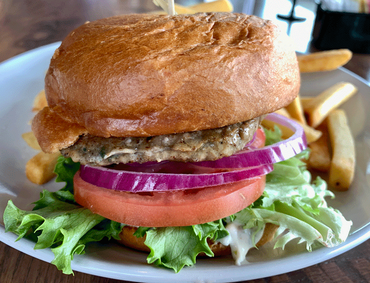 We’ve always known what to expect from boneless wings, overwhelmingly preferring bone-in wings. From a tactile, experiential and flavor perspective, they’re just better…much better. Alas, the Marigold Cafe offers only boneless wings, described as “tender pieces of chicken breast fried or grilled, tossed in one of our homemade sauces: BBQ, sweet chili or garlic buffalo.” At eight pieces per order, it’s a generous appetizer. As with so many chicken wings we’ve had, these have a tendency toward mushiness especially since we had to transport them fifteen miles. We didn’t find much balance in the “sweet chili” sauce which was nearly cloying with virtually no hint of heat. Sure, there’s plenty of meat, but we missed the experience of gnawing around the bones and extricating the juicy meat.