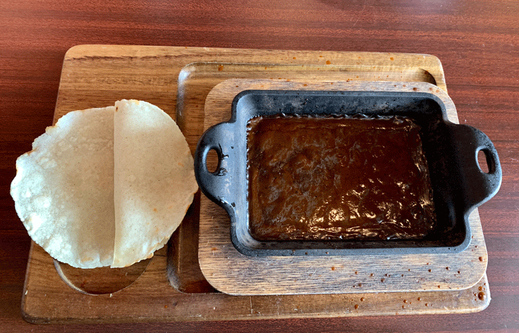 20 February 2020: Though our inaugural visit left us very contented, the one dish which impressed itself most prominently on my taste buds was the 154-day mole. Perhaps it’s because my palate is treated (or subjected) to so many varied flavor profiles, it’s rare that any one item remains ingrained in my mind for five days. That’s how long it took me to return to Urban Taqueria to confirm what my taste buds had been telling me–that this is one phenomenal mole. There are, however, no mole dishes on the menu. Thankfully Hanif and Dennis were very accommodating in my request for a burrito smothered in mole.