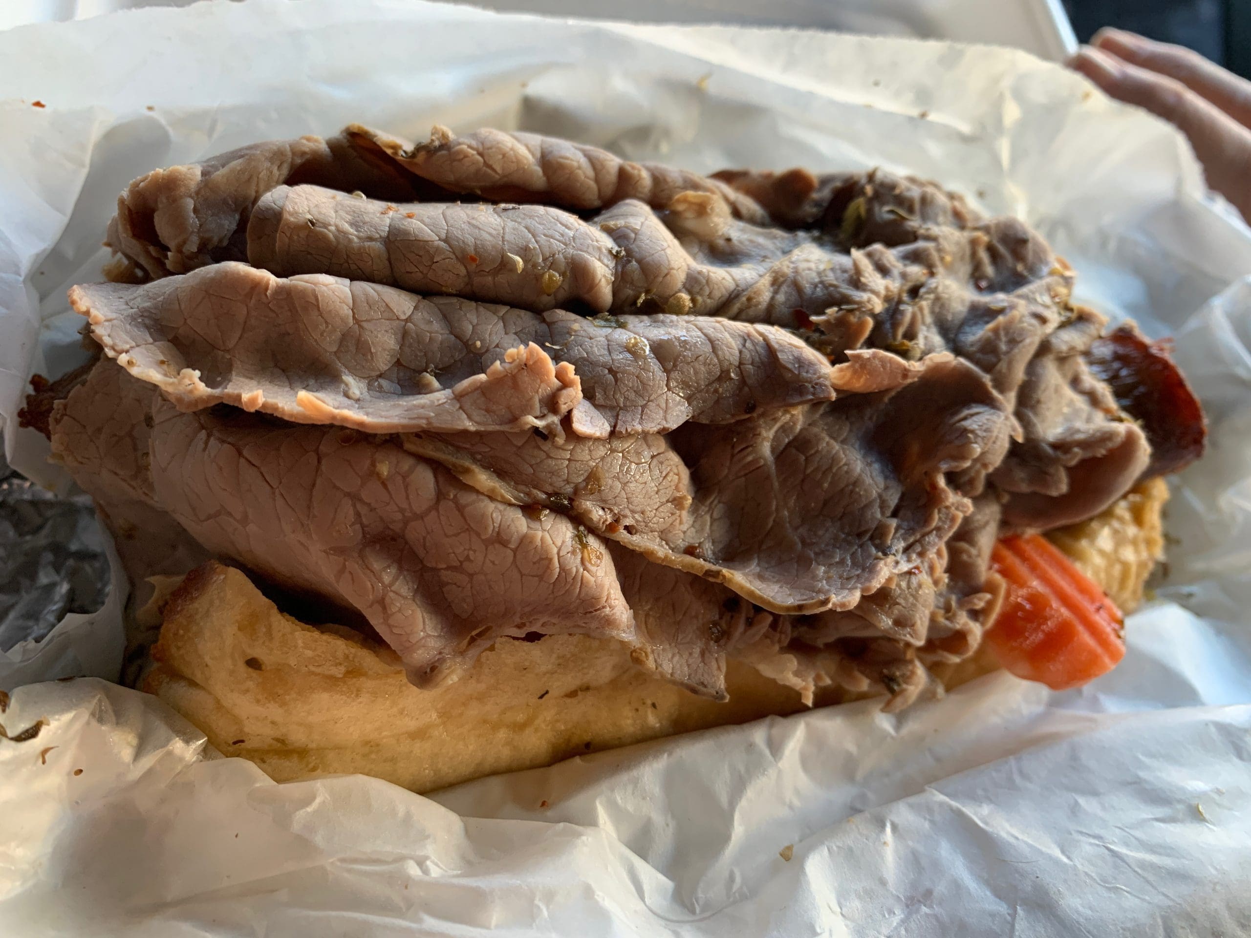 14 November 2020: Ask any Chicago transplant in Albuquerque or anywhere else to list the five things they miss most about the Windy City and it’s a good bet the list will include Italian beef sandwiches, a staple in Chicago. Citizens of the Toddlin’ Town are almost as passionate about this sloppy sandwich as they are Da Bears. Chicagoans grow up worshiping at high counters on which they prop their elbows as they consume Italian beef sandwiches–sometimes because the restaurant has no tables, but more often than not, because no matter how careful they are, they’re bound to spill shards of beef, bits of giardiniera and drippings of spice-laden beef gravy onto their clothing.
