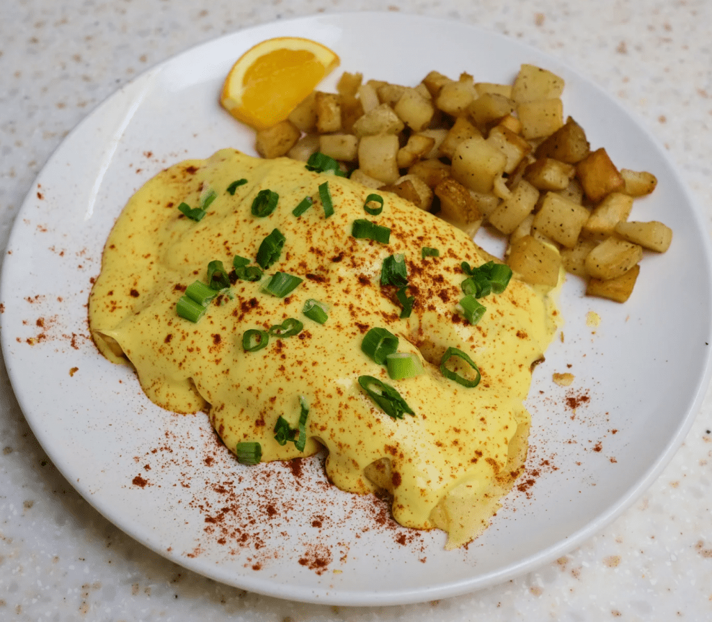 “Knock it off, Napoleon! Make yourself a dang quesadilla!” Only Napoleon Dynamite’s grandmother could possibly be so dismissive about one of the most versatile and delicious anytime meals. She probably could never envision something as good as the Alto Breakfast Quesadilla (eggs scrambled with bacon, green onions, tomatoes and cheese lightly grilled between fresh flour tortillas served with salsa, sour cream, pan-fried potatoes and pinto beans). Even without New Mexico’s sacrosanct green chile, it’s a very good and very filling breakfast entree.