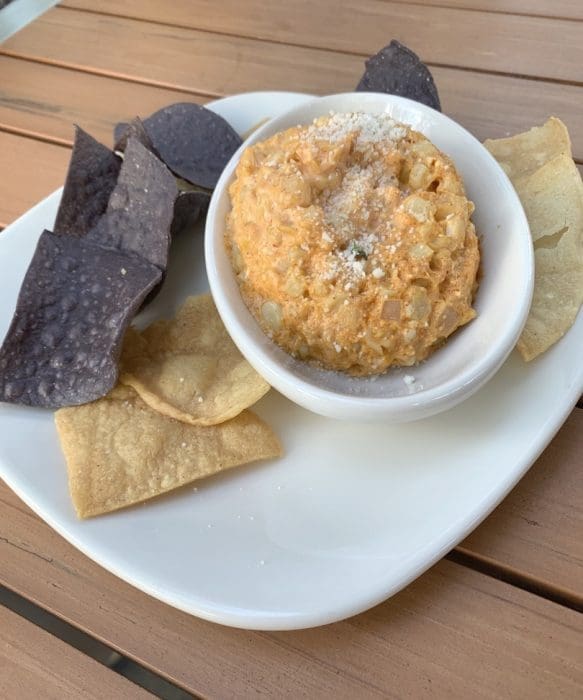 The “small plates” section of the menu lists seven appetizers including hummus and avocado toast. Our selection was the elote dip, a three cheese Mexican street corn dip served with blue and yellow corn chips. We debated whether or not Georgia O’Keeffe would have liked this dish. The adventurous painter was known to have been an avid gardener whose recipes were rather simple and replete with natural ingredients. The dip is rather simple, its ingredients natural and it’s a delicious way to start a meal. Our server graciously gave us a copy of the recipe, confirming the three cheeses were cream cheese, Parmesan and Cheddar. The sweet corn is emboldened by both cayenne and chile powder, but this dip probably has less heat than most con queso. We actually ran out of chips fairly early on, but happily enjoyed the remainder with spoons.