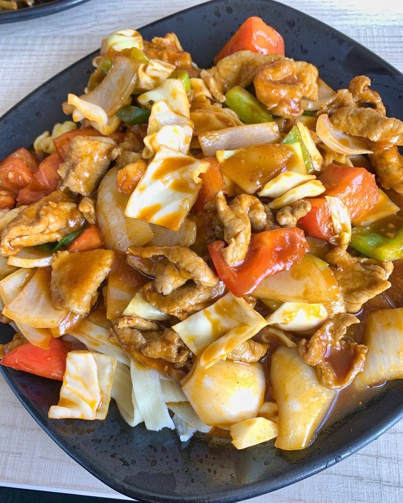 9 November 2024: If you’ve ever asked yourself why some Chinese food is so “shiny” (as pictured below), the answer is corn flour or corn starch which is commonly used as a thickening agent in Chinese cooking. Corn flour helps create a glossy texture and enhances the consistency of Chinese dishes. Sometimes a relatively small amount of cooking oil poured over the finished food after it is placed in the serving dish. This practice also gives Chinese food its sheen. Okay, so you may not ever have asked why Chinese food is so shiny, but now you can stump your friends with this small bit of useless knowledge.