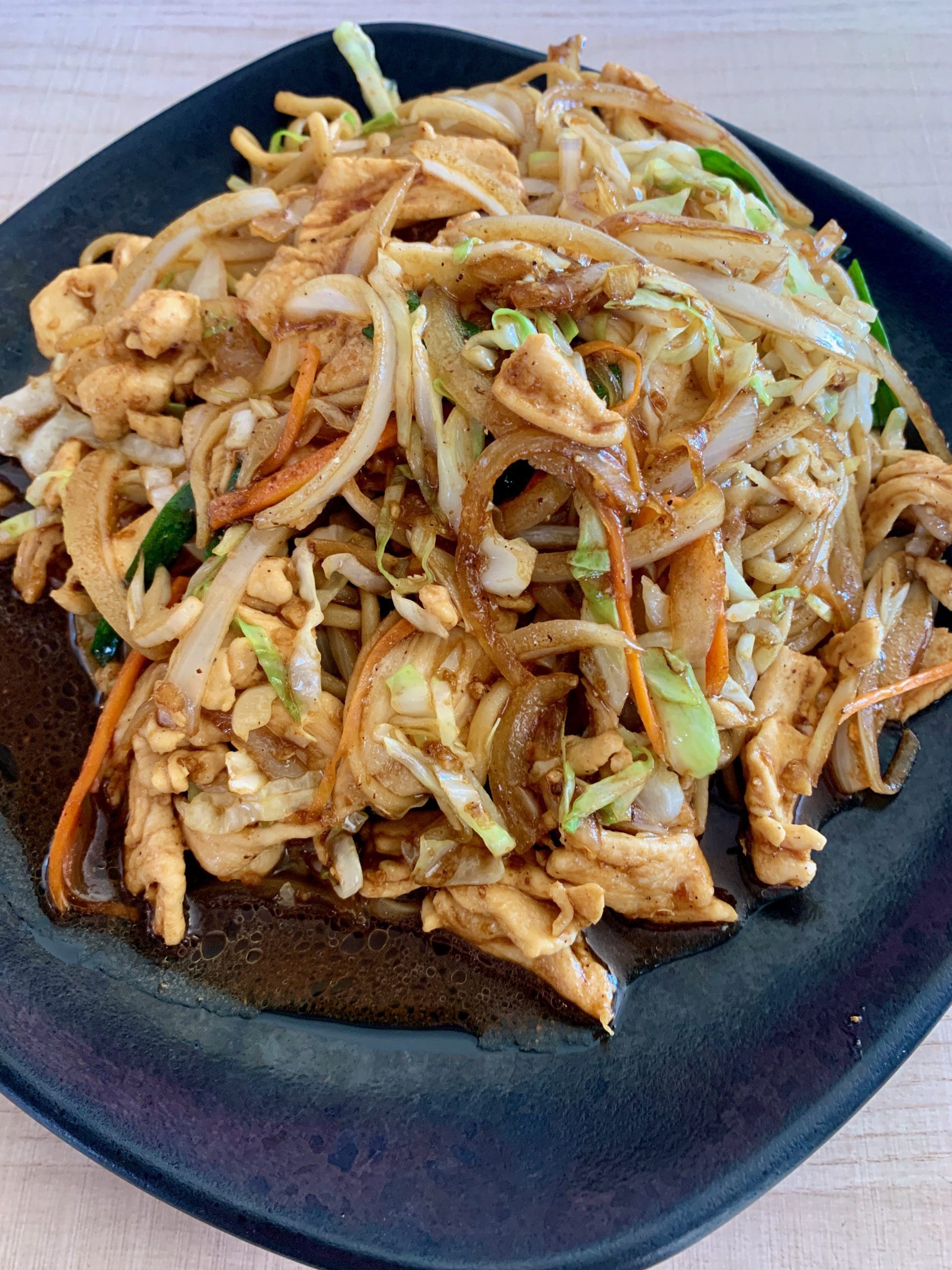 25 July 2020: Leave it to me to order a menu item about which very little information seems to exist online–the curiously named westland beef noodles (the menu also lists westland chicken noodles and westland lamb noodles). We surmised the wide, flat noodles might be called “westland” because the dish is a sort of “Italy meets China” fusion (insert another Marco Polo legend here) of ingredients. Red, green and yellow peppers as well as white onions are probably as common in Chinese food as they are in Italian cuisine, but tomato sauce skews heavily toward Italian food. Noodle Works creates its own tomato sauce from fresh tomatoes which they season in a manner not entirely unlike some Italian dishes. Shredded cabbage is perhaps the most Chinese outlier and it’s probably the least flavorful. This is stir fry fusion magic at its best, a dish you could enjoy whether you’re in the mood for Chinese or Italian food.