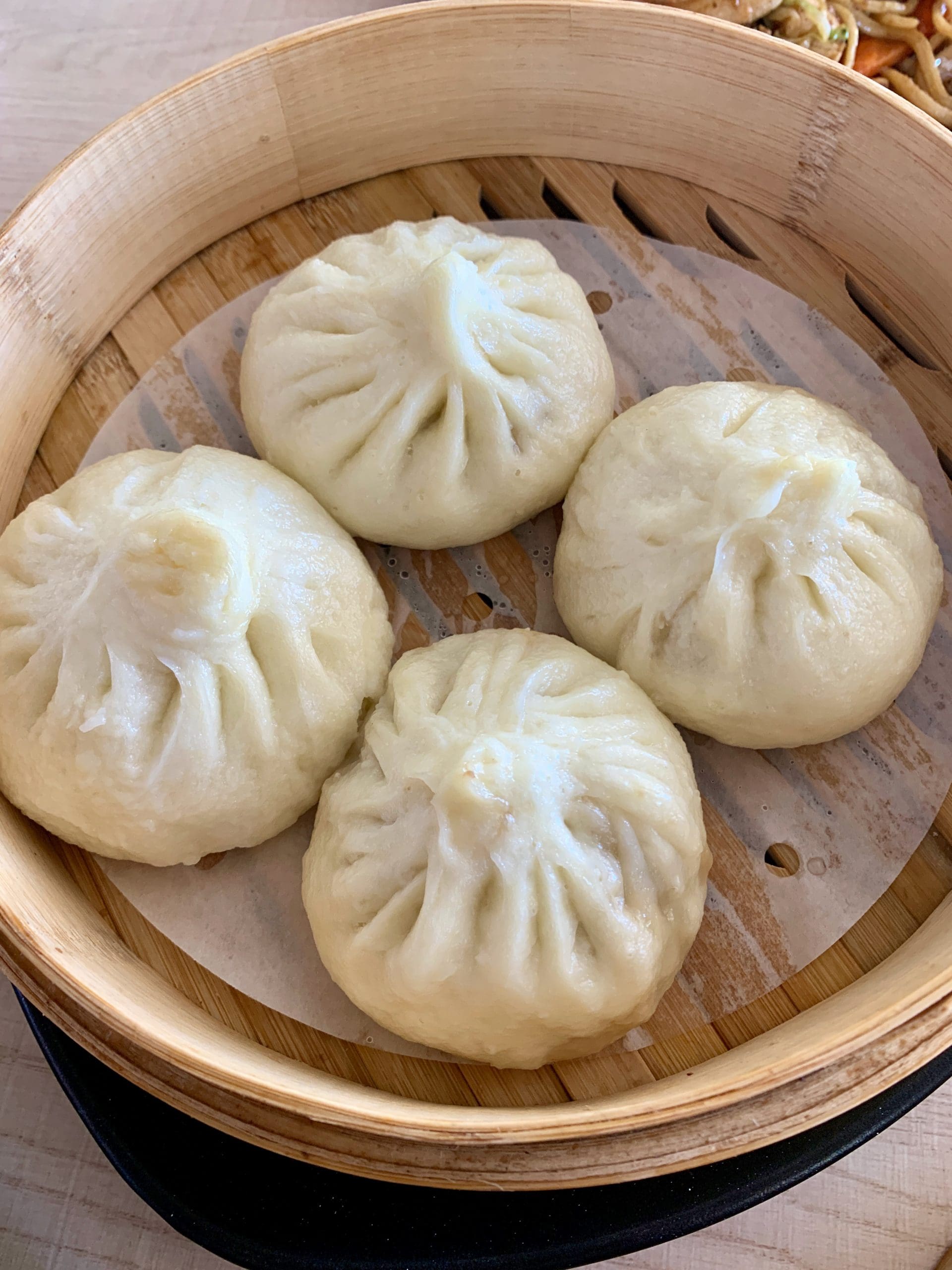 Along with a variety of dumplings, Noodle Works offers several types of steamed bun. Deciding which to order is always a challenge. A very safe bet is the pork scallion bun, served four to an order on two-tier bamboo steamer baskets in which the bun are actually steamed. Wisps of that steam are released into the air when you open the top tier of the basket, an aromatic introduction to the deliciousness that awaits. David Chang, a Chinese restaurant impresario describes steamed buns as: “They’re just our take on a pretty common Asian food formula: steamed bread + tasty meat = good eating.” That’s an apt description for the pork scallion buns, about the size of a “slider,” but wholly different and thoroughly satisfying.