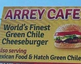 About halfway between Truth or Consequences and Hatch on I-25, you may have espied a billboard audaciously proclaiming “world’s finest green chile cheeseburger.” That billboard has always piqued my curiosity and prompted such questions as “where the heck is Arrey?” Though signage directs motorists to Exit 59, all there is to see beyond the exit are verdant fields to the right and more high desert expanse to the left. Then, of course, there’s the obvious question “if it’s so darn good, why isn’t it on the New Mexico Green Chile Cheeseburger Trail?”