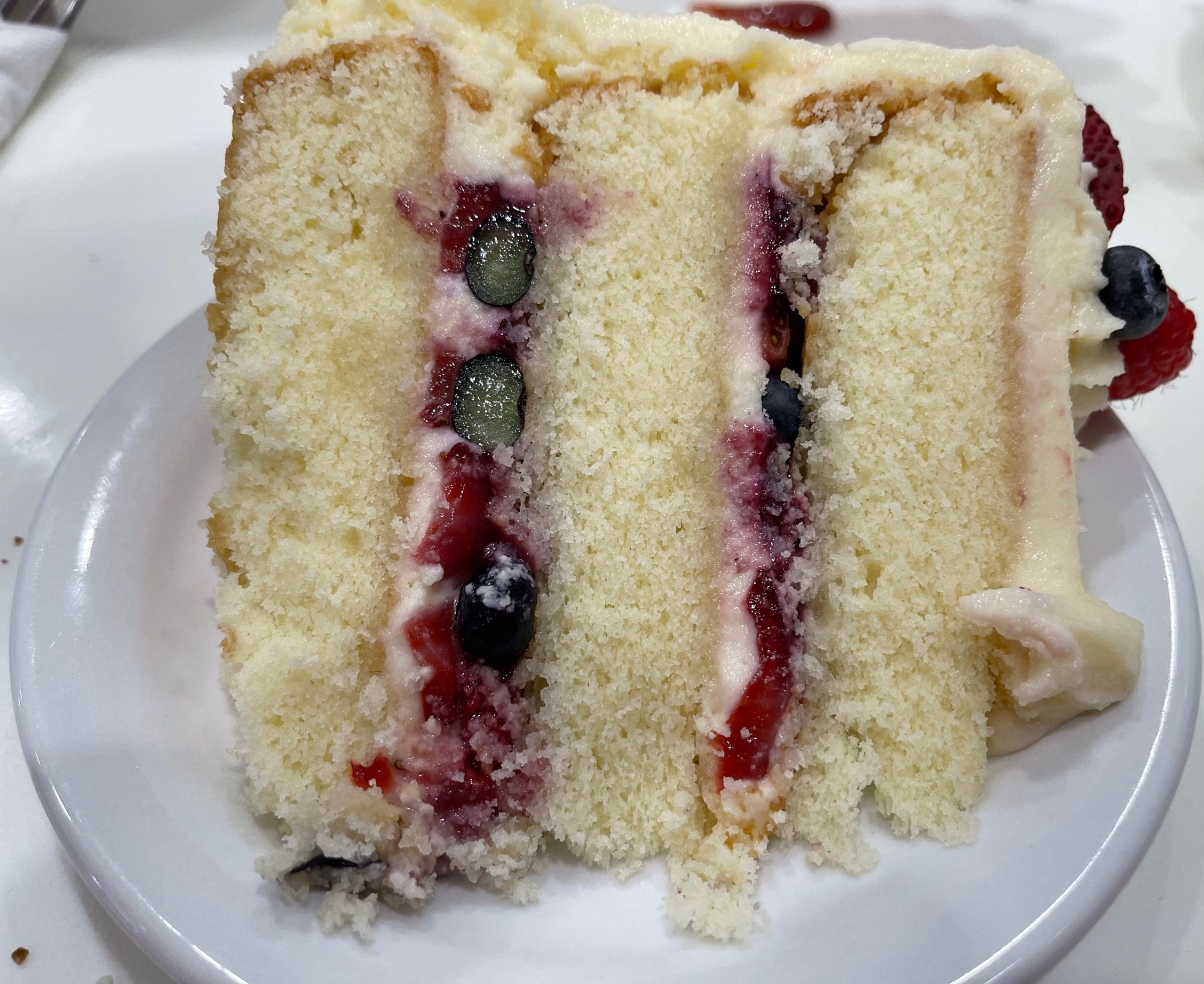 3 June 2022: Chantilly cream, or more appropriately crème Chantilly, is a sweetened whipped cream, originated in small town of Chantilly, France. Chantilly cake, on the other hand, can refer to two different kinds of cakes. In the South, Chantilly cake is a vanilla cake topped with fluffy, sweetened whipped cream (or whipped mascarpone). This version was “invented” in New Orleans. In Hawaii, a Chantilly cake is a chocolate cake with coconut frosting. Upscale’s rendition is made of light and airy sponge cake layers. Each of the middle layers is slathered filled fresh berries and more sweetened cream. It’s an incredibly light cake with a burst of fresh berries in every bite. Though we enjoyed several Chantilly cake slices in the Deep South, we’ll take the Upscale version any time.