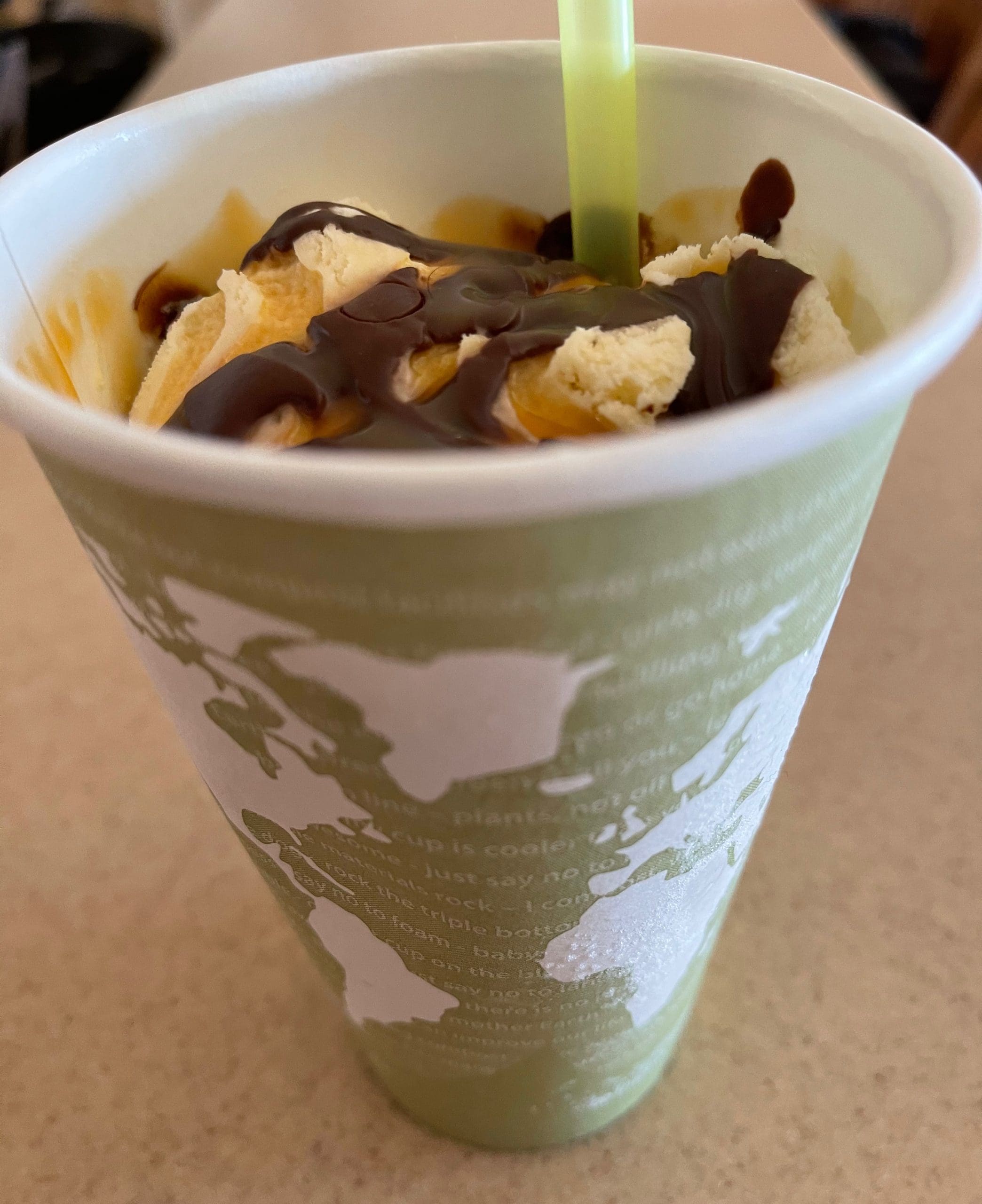 27 January 2021: True to the restaurant’s name, shakes featured prominently on the menu. There were four of them: vanilla, chocolate, berry, turtle custard. You’ll also find four old-fashioned floats: black cherry, root beer, cream soda and Coke. Having been acquainted with Lily & Liam’s magnificent turtle cheesecake made my choice easy. A turtle custard shake (caramel, ganache and pecans) it would be…or at least that’s what I ordered. Even after getting it home half-an-hour later, there’s no way even a Hoover high suction vacuum cleaner could have sucked it up–much less a straw. The “custard” was still hard. Nary a pecan or pecan piece was to be found. As an ice cream dessert with caramel and ganache, this was a pretty good dessert. As a shake, it didn’t pass muster.