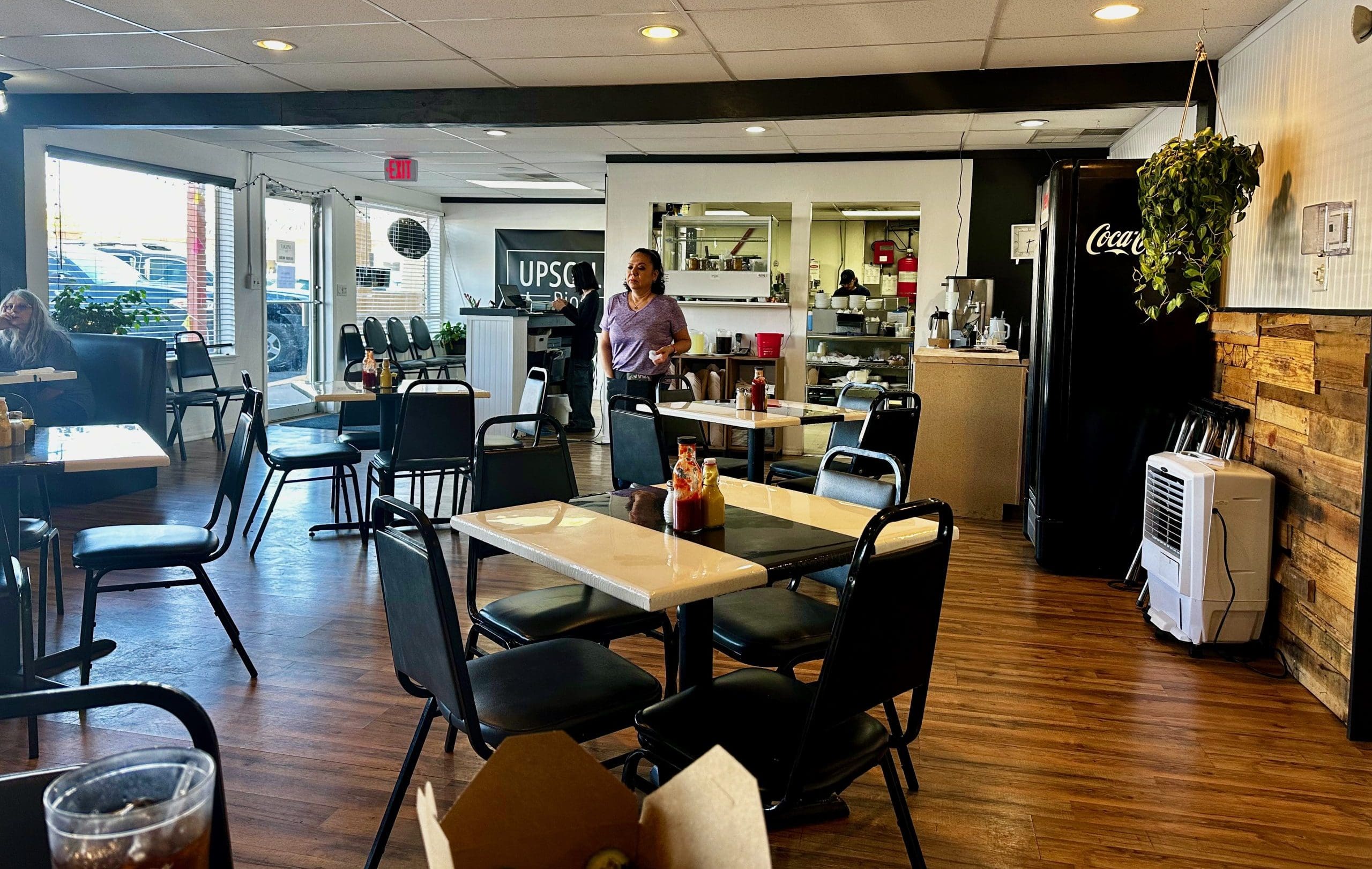 3 June 2022: The ghost kitchen concept proved so successful that in April 2022, Upscale Burgers & Shakes relocated to a brick-and-mortar establishment “just down the hill” from Rio Rancho. Situatd in the space that previously housed Johnny Rocket’s, Upscale plied its concept on the ground floor of the Cottonwood Mall immediately next door to the Regal Cinema. The capacious space underwent a significant make-over. Cobalt blue and white walls and pristine wood flooring gave the restaurant a touch of modernity that hearkened back to the days when burgers, shakes and fries ruled. Unfortunately, the Cottonwood Mall location didn’t work out. Mall crowds aren’t what they used to be.