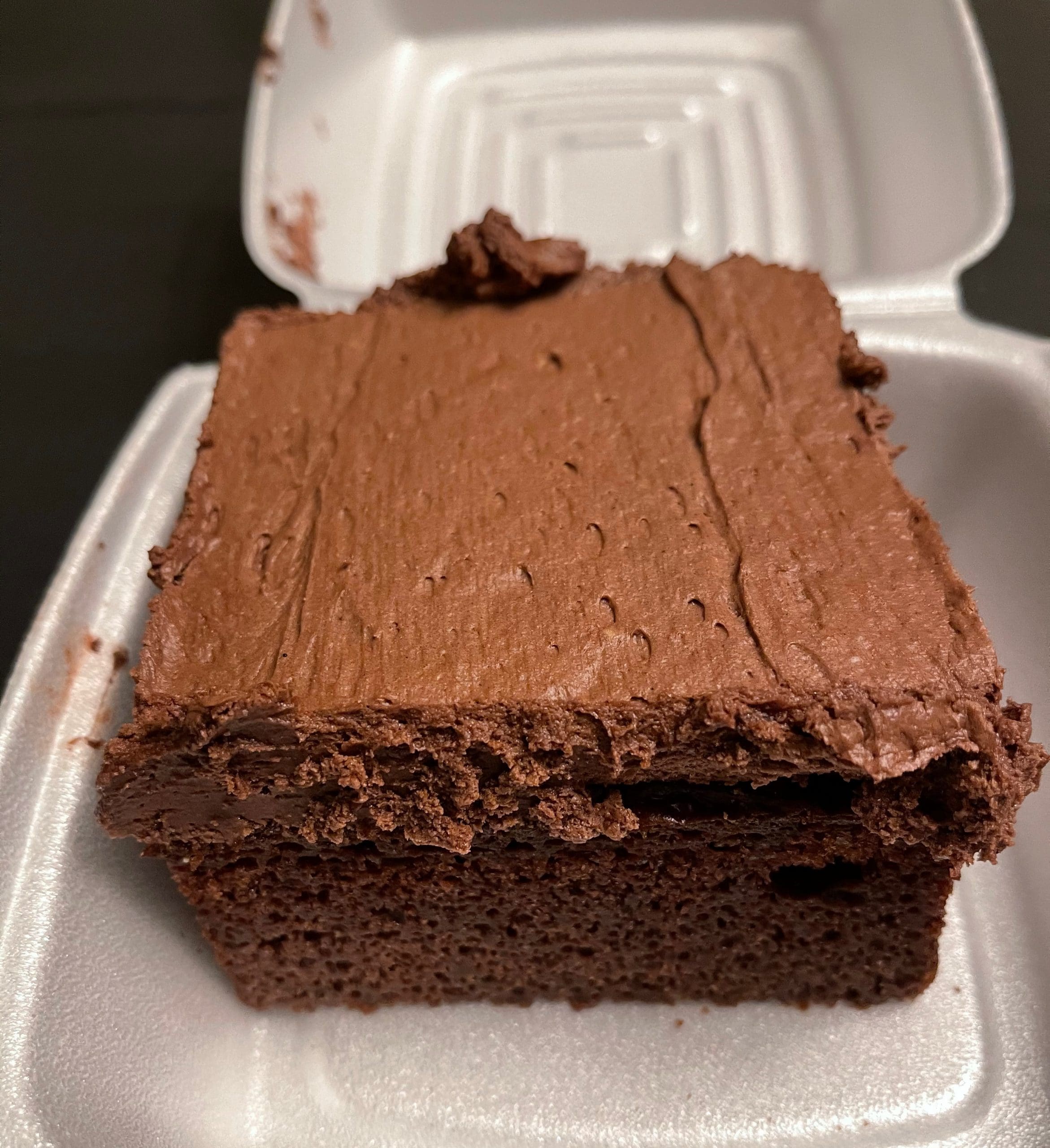 As our servers were making a fuss over The Dude, we asked which dessert would go best with a dachshund as sweet as ours. Both servers agreed the Coke A Cola Cake might do the trick. Having lived in the Deep South for eight years, we’ve had numerous versions of Coke A Cola Cake, but Delvin’s version might be the best. The cake itself has just a hint of the carbonated flavor of Coke with none of its effervescence, but it’s light and fluffy with a frosting that also inherits some of Coke’s unmistakable sweetness.
