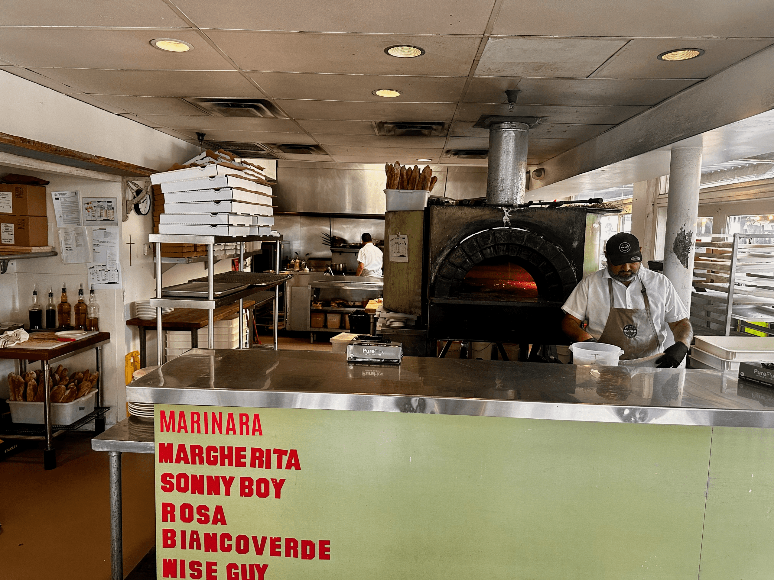 6 January 2026: After perusing the menu, my Kim’s eyes came to rest on the aforementioned Wise Guy (house-smoked mozzarella, wood-roasted onion, fennel sausage). I’m happy to have given it a second chance. Like the speidini, it was so much better the second time around. Marcos, who has lovingly tended the oven for fifteen years and learned from the master himself, showed us a small video of the mozzarella smoking process. He explained that a mix of pecan and oak woods are used. They impart a delightful smokiness to the pizza crust, onions and mozzarella. That smokiness is actually reminiscent of well-smoked (but not overly so) barbecue. For my Kim, the sweet, smoky onions and fennel-enriched sausage were the most exceptional aspects of the pizza. Staff of life lover that I am, it was the crust I became most enamored with. Though it may have been twenty years since my last visit, I’m still over the moon in love with Pizzeria Bianco.