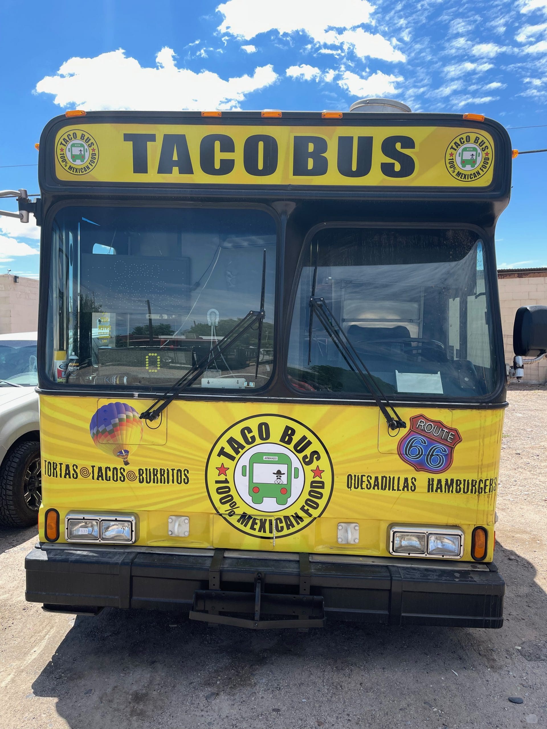 Alas, in our dotage my friends and I can relate to the Rodney Dangerfield’s quip “I’m at the age where food has taken the place of sex in my life.” The only bus in which we’re interested had better serve food, not ferry around naked girls. Maybe that’s why I got so excited when Lorenzo, a trusted friend of this blog, submitted a comment about The Taco Bus. Lorenzo raved about The Taco Bus birria tacos made with goat and “excellent Mexican burgers piled high with most any topping you can think of.” It’s on his short list of both taquerias and burger joints in town.