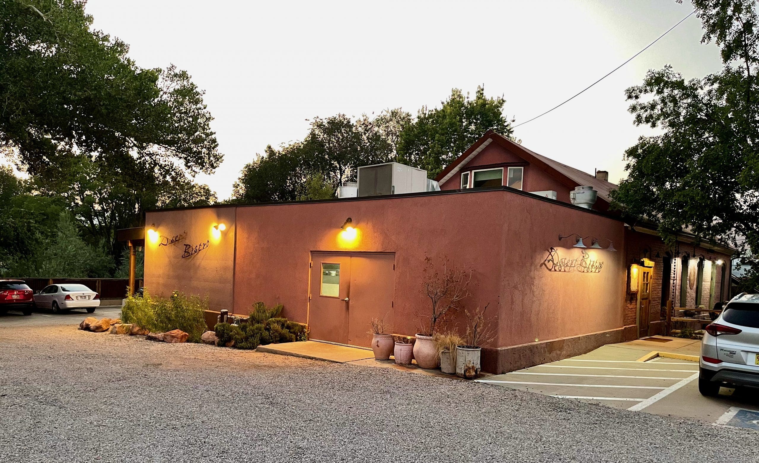 One of the most highly regarded dining establishments in Moab is the aptly named Desert Bistro. Surprisingly this epitome of fine dining is ensconced in a circa 1892 adobe structure that once served as the original dance hall for Moab. That original structure consisted of the entry and dining areas. Capacious, dog-friendly patios have been added for al fresco dining on starry nights. The moon was full on the night of our visit and though partially obscured by the smoky haze of a California wildfire, that full moon added to a romantic ambiance.