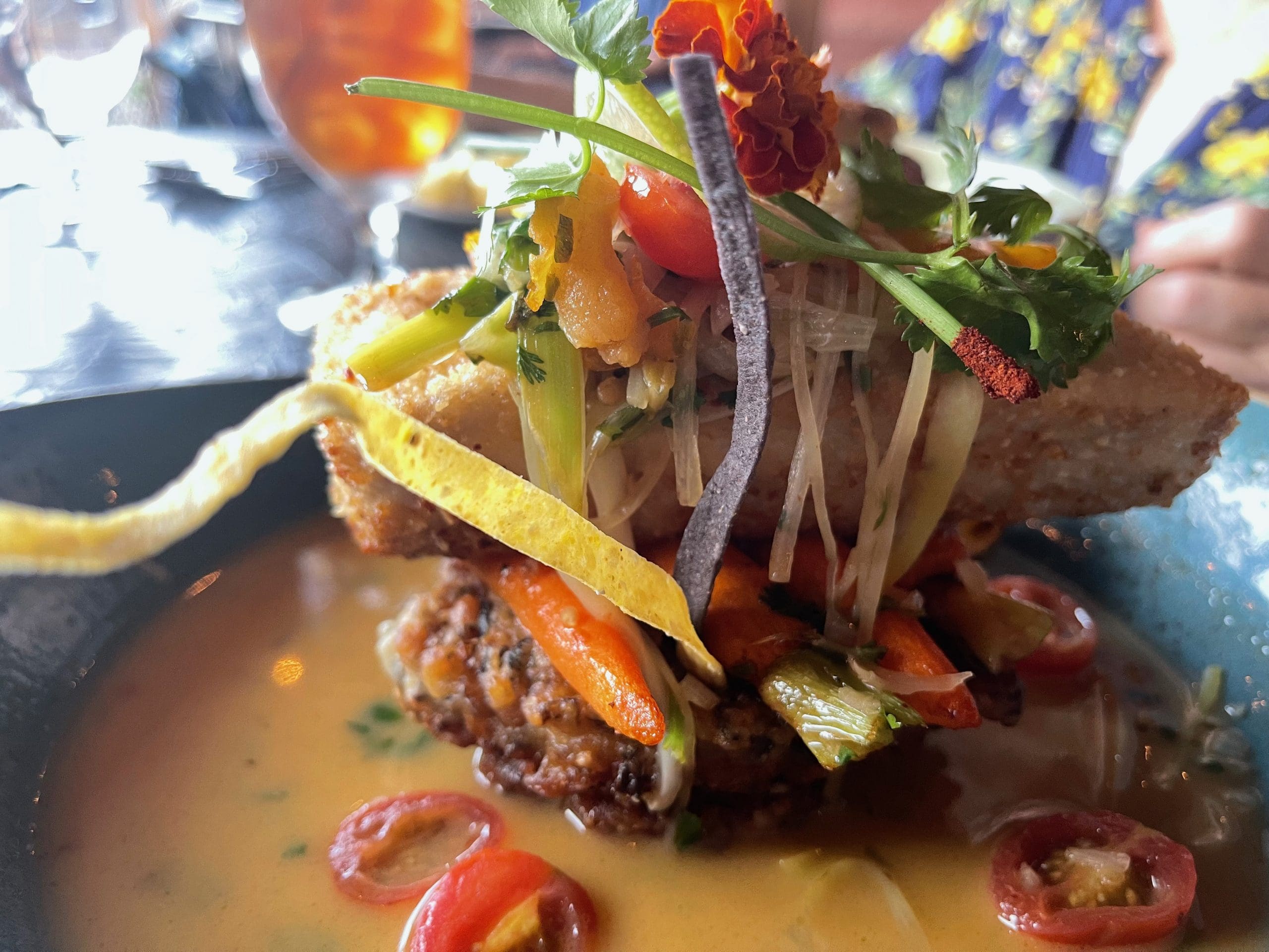 The two fresh fish imports on the day of our inaugural visit were swimming in the Pacific waters of Hawaii just a few days prior to our visit. My choice was monchong (lemon snapper), a firm deep-water, white fleshed fish with pinkish tones. With a high oil content, clear white flesh and moderate, slightly citrusy (for a fish) flavor, it’s a fish that benefits well from a sauce. Bridget raved about the tomato-leek-ancho-lime beurre blanc sauce which she assured me would bring out the best from the monchong. Indeed, the sauce does that and more, elevating the lemon snapper to favorite new fish status. In a throwback to a 90s plating style, the monchong was served atop calico rice pancakes and baby carrots. It’s artsy and fancy, but we prefer our entrees and their accompaniments side-by-side. Still, for a dish this delicious, we would have enjoyed it thrown together haphazardly.