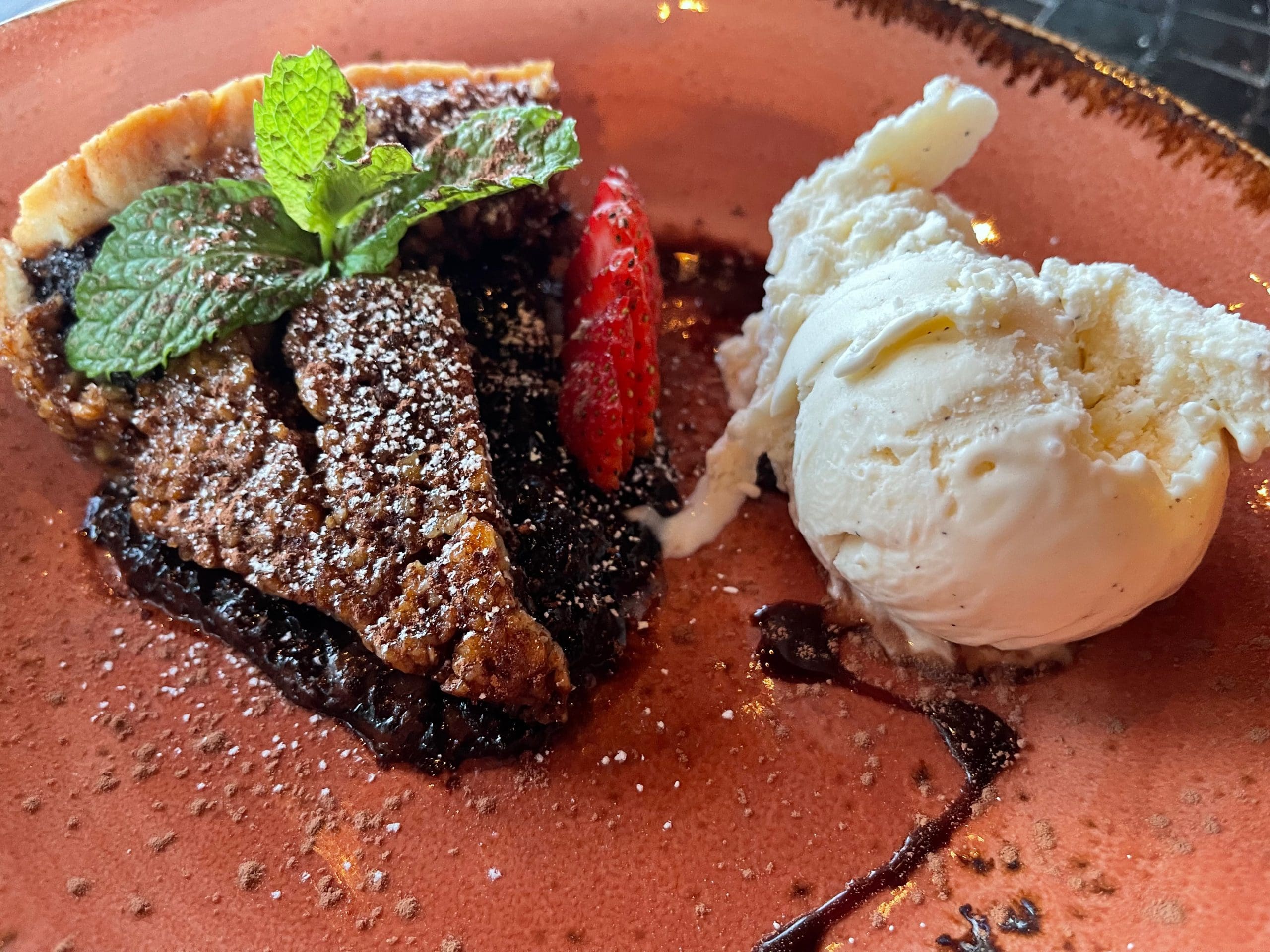 After polishing off a chocolate walnut torte served warm with a side of vanilla bean ice cream, it dawned on me that the restaurant could well be renamed Dessert Bistro and it would still be as good. Bridget described the chocolate walnut torte as both her favorite dessert on the menu and “similar to, but better than pecan pie.” When we lived in Mississippi those would be fighting words. From Bridget, those words were prophetic. This walnut torte was better than pecan pie with a similar richness, but slightly more savory notes. The bitter notes of the dark chocolate blended so well with the buttery crust and that cold, creamy vanilla bean ice cream.