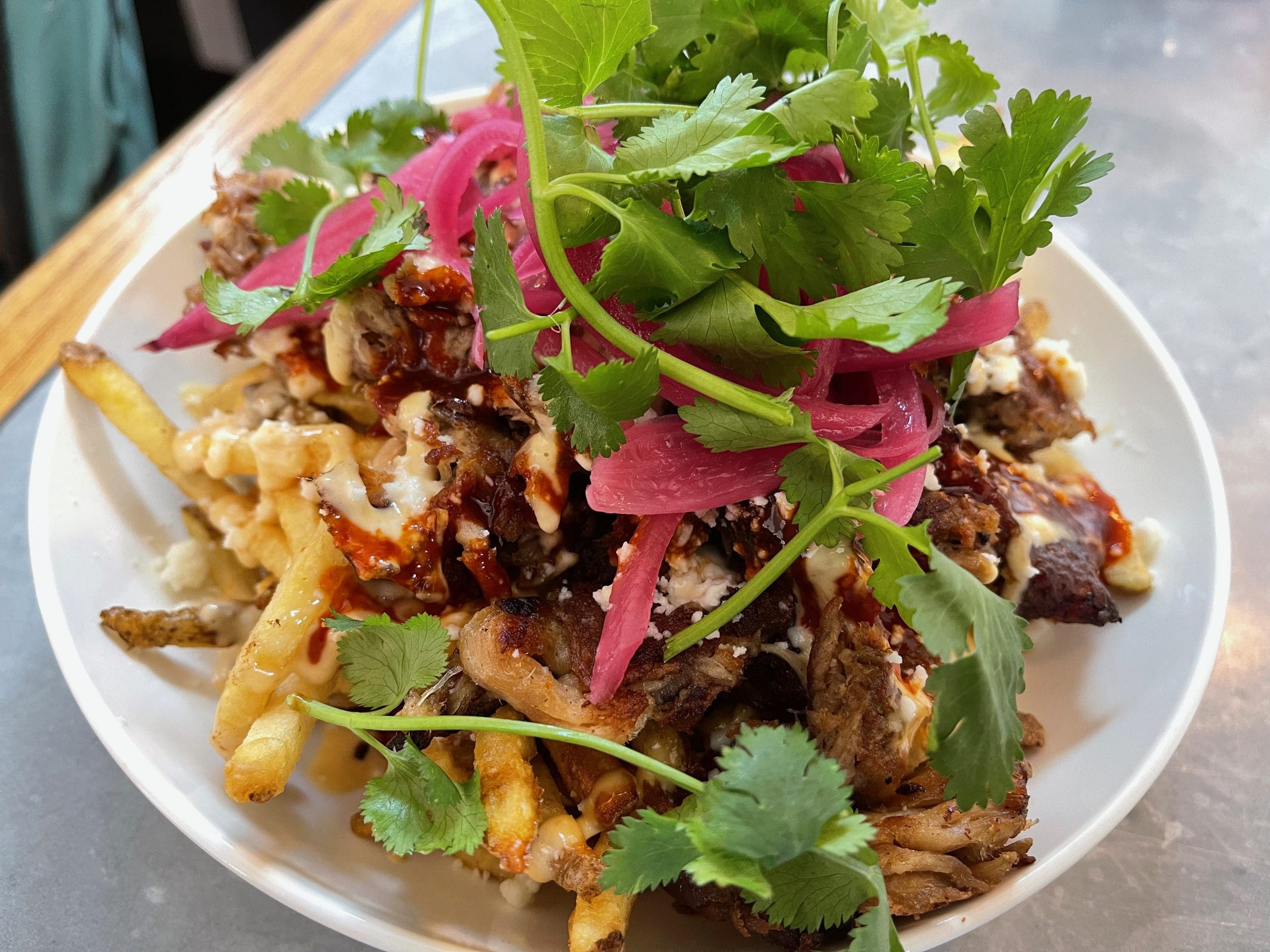Not long after Kitsune’s brick-and-mortar launch it received a three-and-a-half star rating from the Albuquerque Journal. Shortly thereafter Kristin Satterlee also waxed eloquent about Kitsune on her fabulous blog Unfussy Epicure. Though we never managed to visit Kitsune in its food truck instantiation, the two reviews clearly told us we had missed a pretty special dining experience. It didn’t take long before the designation “special” was validated in our eyes. If you tuned in to the Food Network’s Diners, Drive-Ins and Dives on Friday, February 25th, 2022, and hadn’t already been familiar with the Albuquerque Asian inspired fusion restaurant named Kitsune, you probably got the impression from Guy Fieri’s lavish praise that Kitsune is a long-time resident of Flavortown. In truth, Kitsune went from food truck to brick and mortar restaurant to an appearance on Triple D in a span of less than three years. In the restaurant world that’s warp speed. Fieri fell in love with Kitsune’s inventive pork belly bowl and jackfruit burrito, rating the latter 9.5 out of 10. He recommended Kitsune bottle its absolutely delightful Kitsune sauce and just couldn’t get enough of the inventive cuisine that titillated his taste buds.