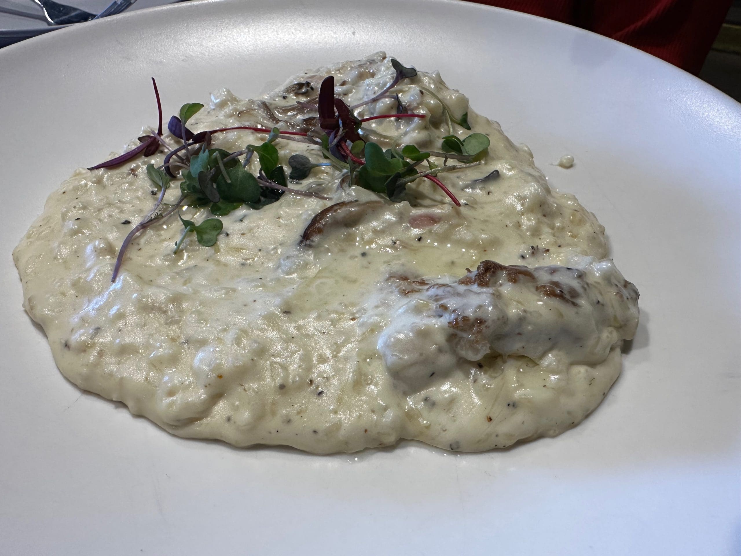Whiptail offers two fungi focused entrees on its Shareable Small Bites menu. First is “The Local Fungi,” a platful of locally sourced mushrooms, garlic, chile flake, shallots and truffle oil. Our experience with this plate is strictly ogling it as it was delivered to an adjacent table. We did, however, sate our lust for fungi wit the “What a Fungi Risotto” (risotto, locally sourced mushrooms, white truffle oil, Parmesan cheese). This is a good risotto, replete with mushrooms of various types and sizes. The umami-rich pairing of Parmesan and fungi makes this a very special dish, but our preference would have been for the grains of arborio rice to have been less clumped together. It’s a “babysitting” challenge to make a great risotto, but it’s worth the effort.