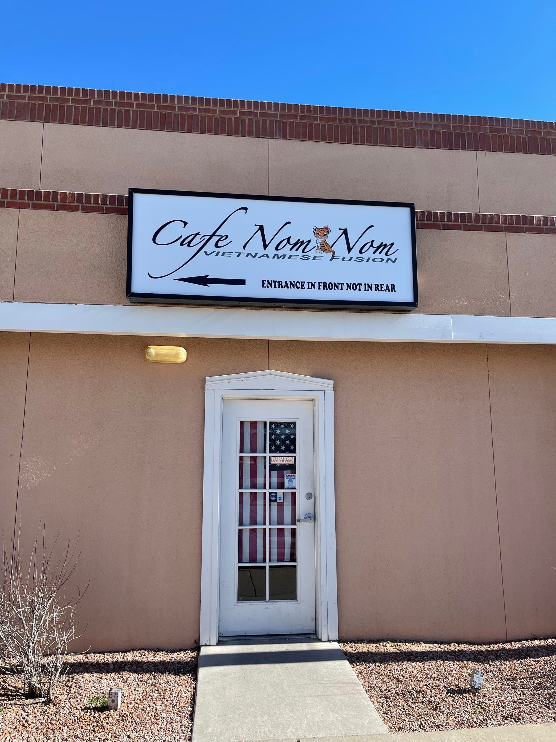 After my inaugural visit to Albuquerque’s Cafe Nom Nom in its inaugural location (Monte Vista and Central), I actually tried out some of those alternative words for the delightful Vietnamese fusion restaurant which had just captured my affections: “Cafe Nectarous. Cafe Palatable. Cafe Titillating. Cafe Toothsome.” Nah, none of those fit. Cafe Nom Nom does. It’s entirely possible an utterance or two of “nom nom” or some derivative thereof escaped my mouth as I thoroughly enjoyed the deliciousness set before me. Despite contentions to the contrary, it’s unlikely the Huffington Post would have expressed similar satisfaction with one of their anointed bazillion alternatives.