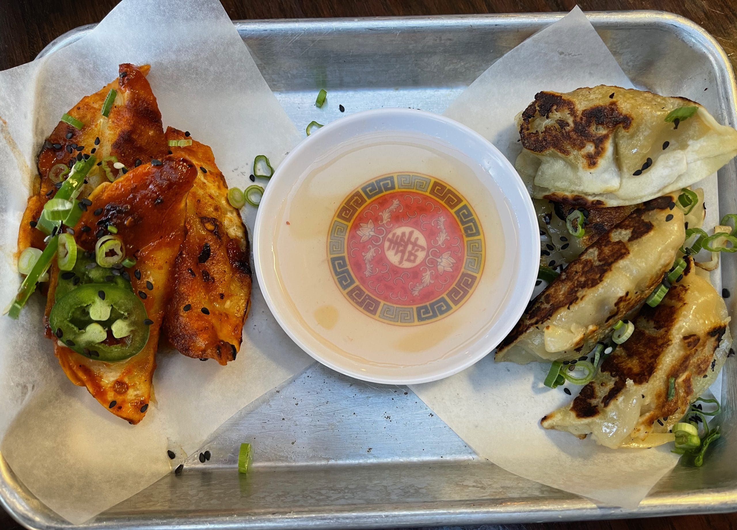Cafe Nom Nom wants to make sure you make a lot of money in 2022, offering tempting dumplings you’ll want to order time and time again. Best of all, you can have the regular nom nom pot stickers (pork and veggies with a side of lemongrass sauce) or you can order them “angry” with a housemade angry sauce. My Kim and I shared a half order (three) of each (you can guess who wanted them angry). Jalapeños are also provided in the event you not only want them angry, you want them vengeful. You won’t even be angry when the angry sauce is all over your hands. It’s truly finger-licking good.